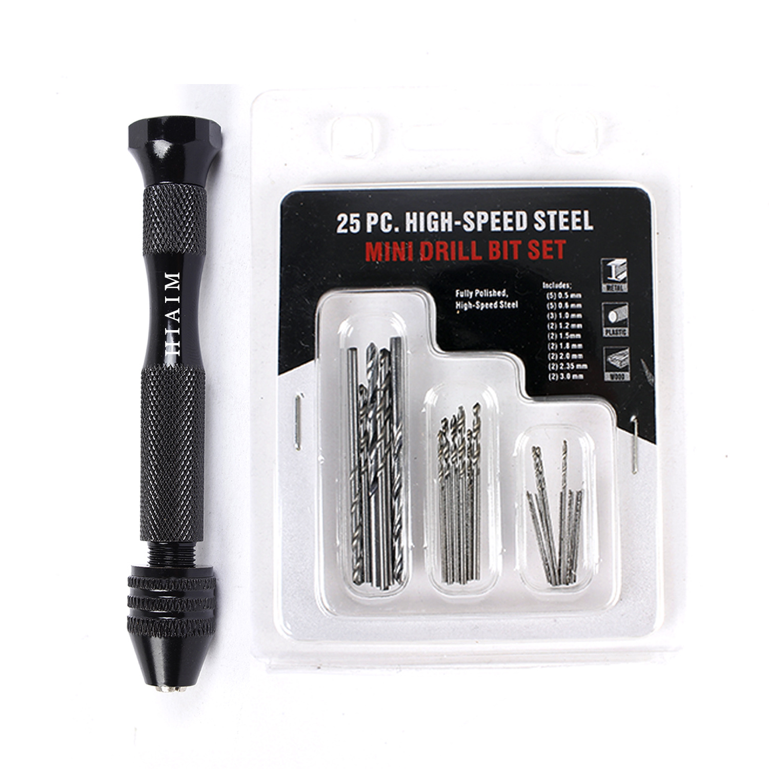 跨境现货迷你黑色铝合金手捻钻 金刚菩提文玩模型打孔DIY工具套装