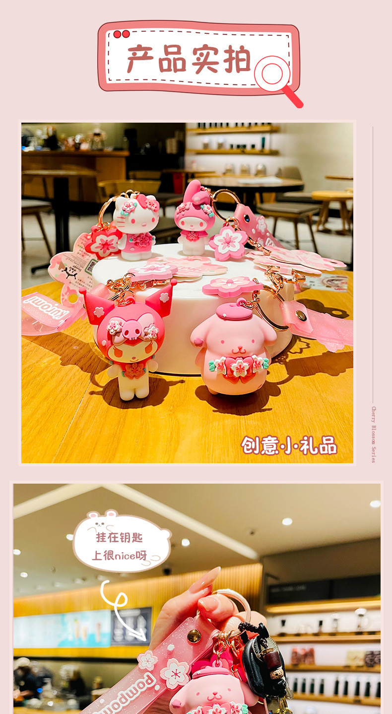 卡通可爱三丽鸥樱花钥匙扣美乐蒂库洛米女汽车包包钥匙链挂件礼物
