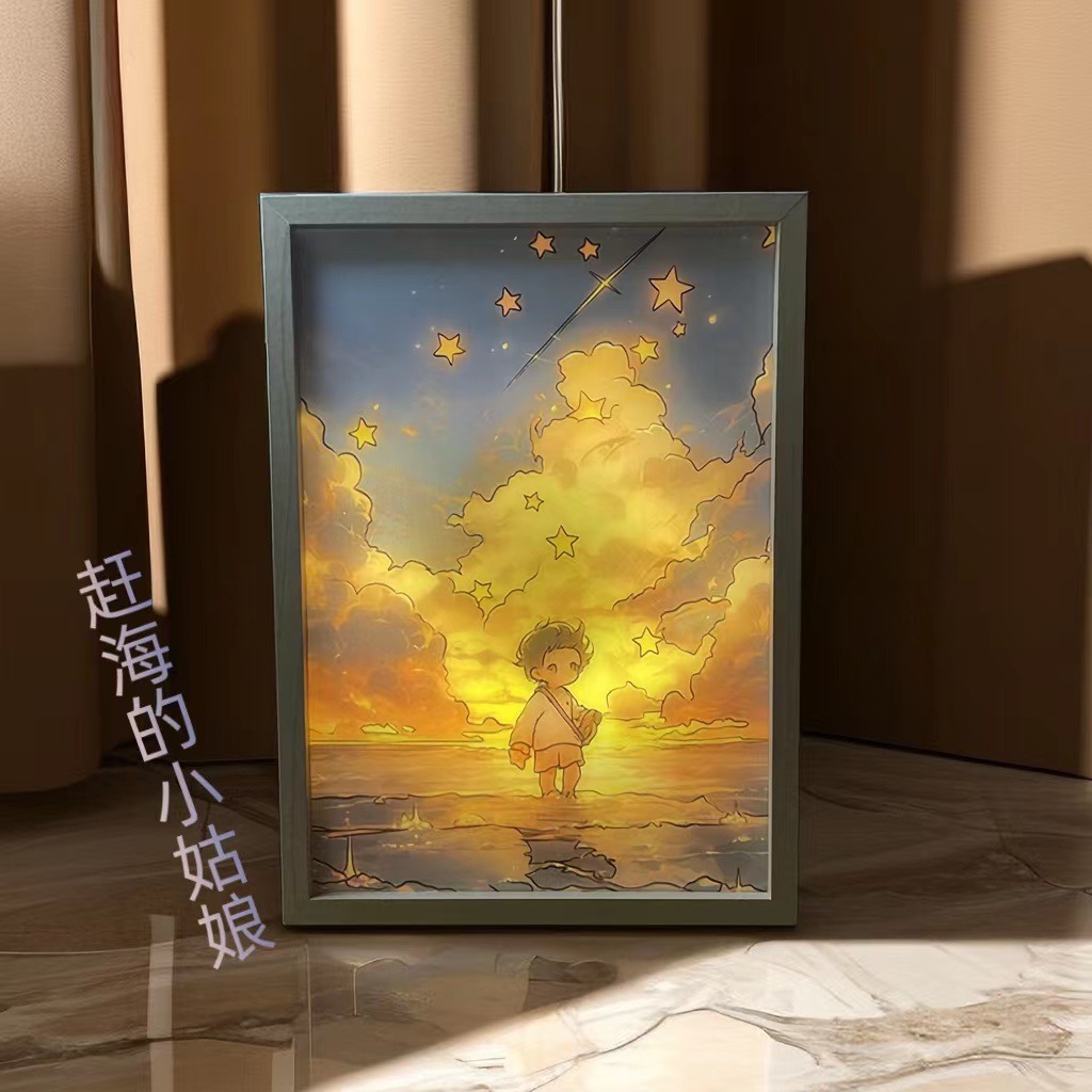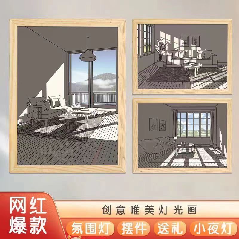 灯光画小夜灯ins抖音灯光画夜灯装饰画灯光画小摆件led生日礼物女