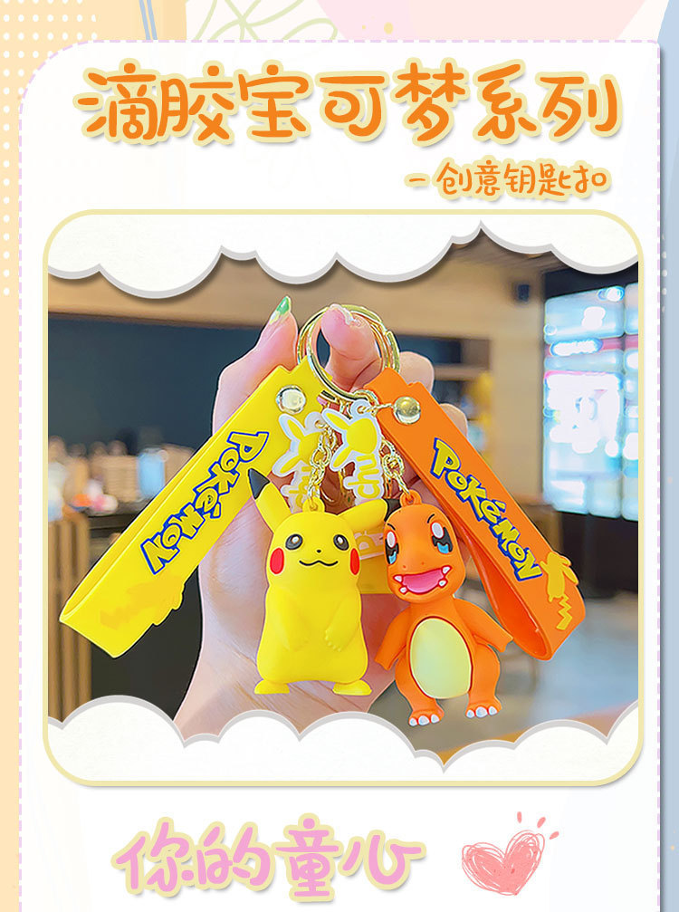新款神奇宝贝公仔钥匙扣卡通皮卡丘杰尼龟包包挂件可爱汽车钥匙链