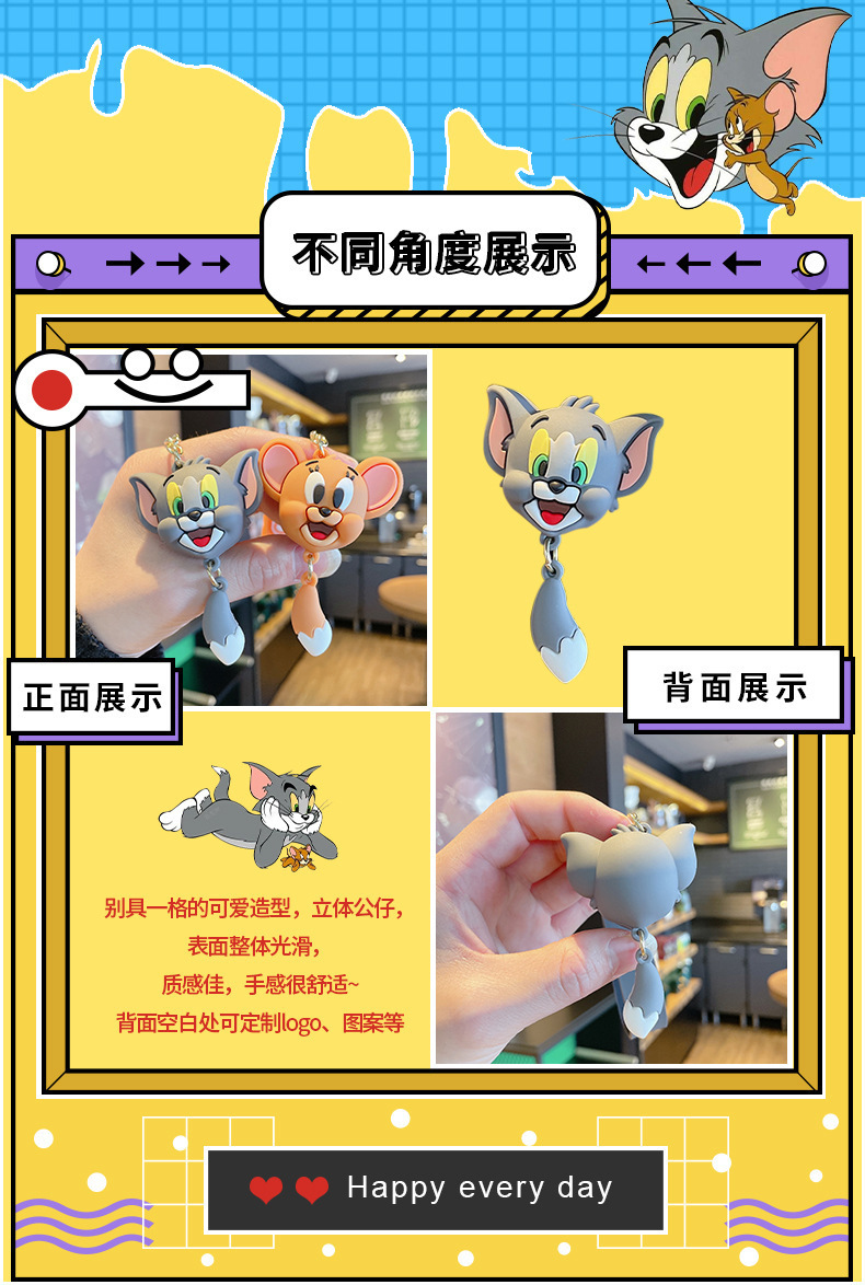 创意猫和老鼠卡通钥匙扣小尾巴汤姆杰瑞可爱挂件书包车钥匙链配饰