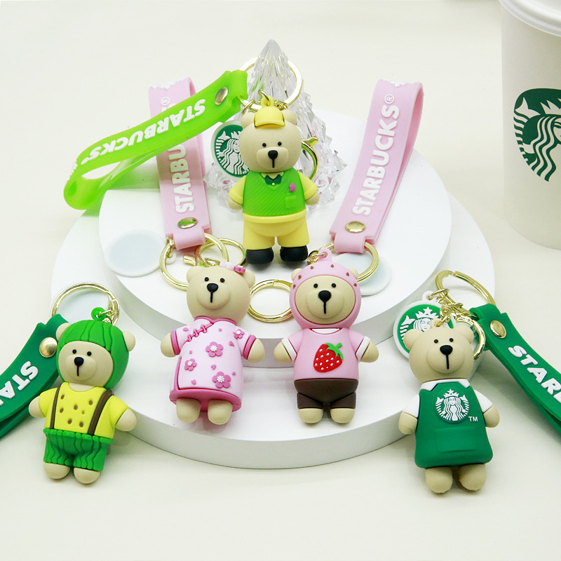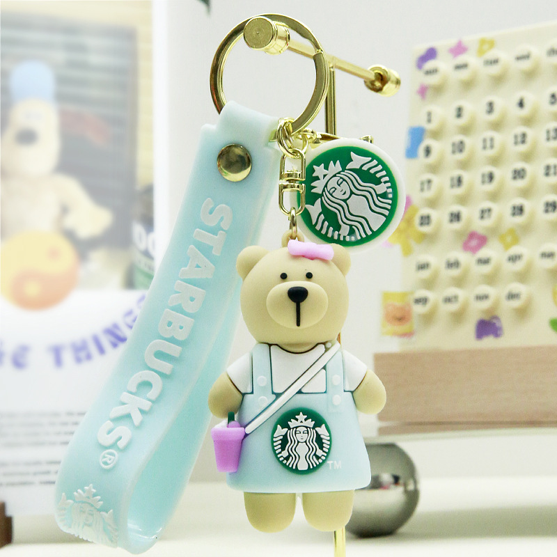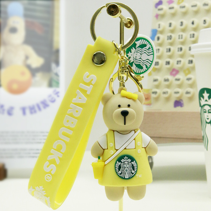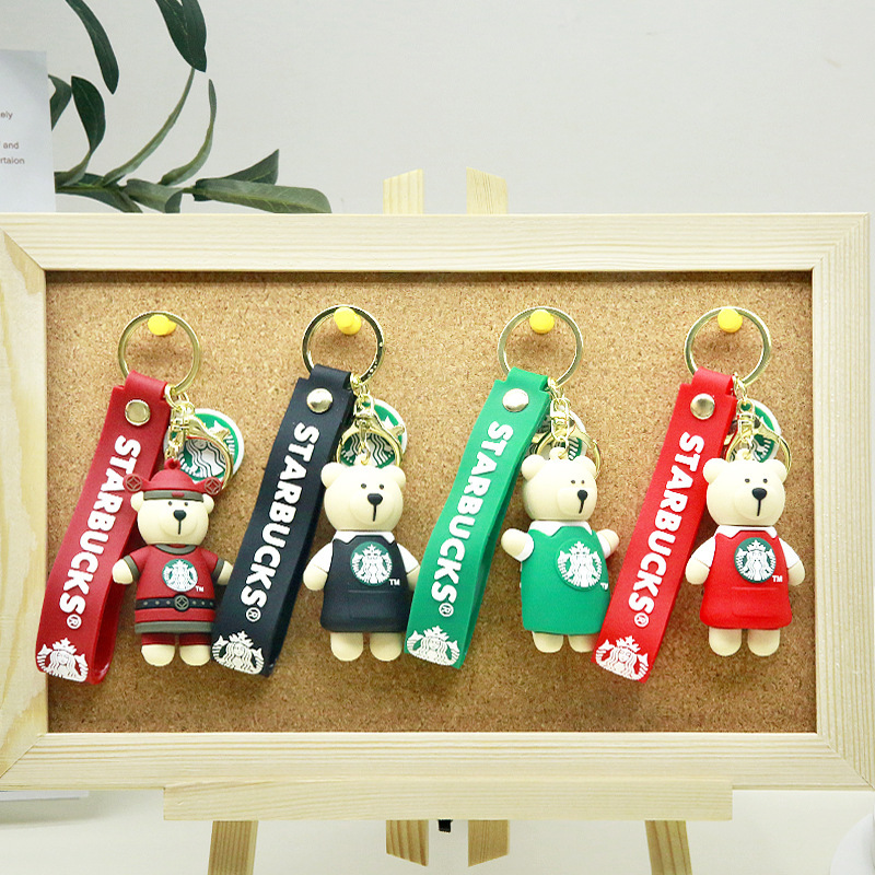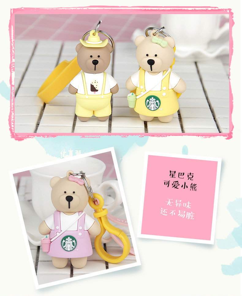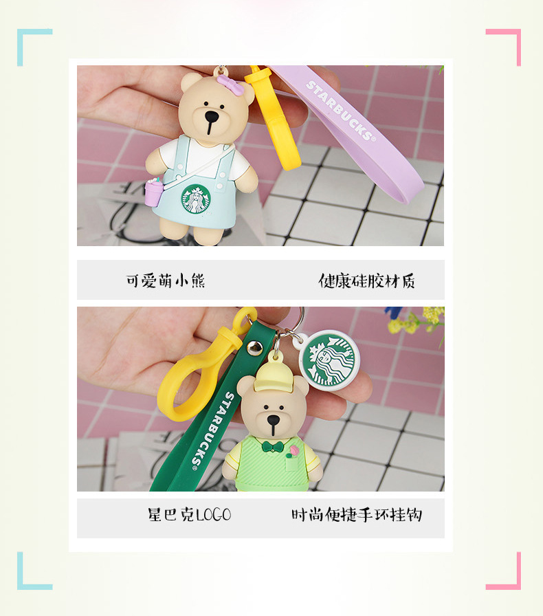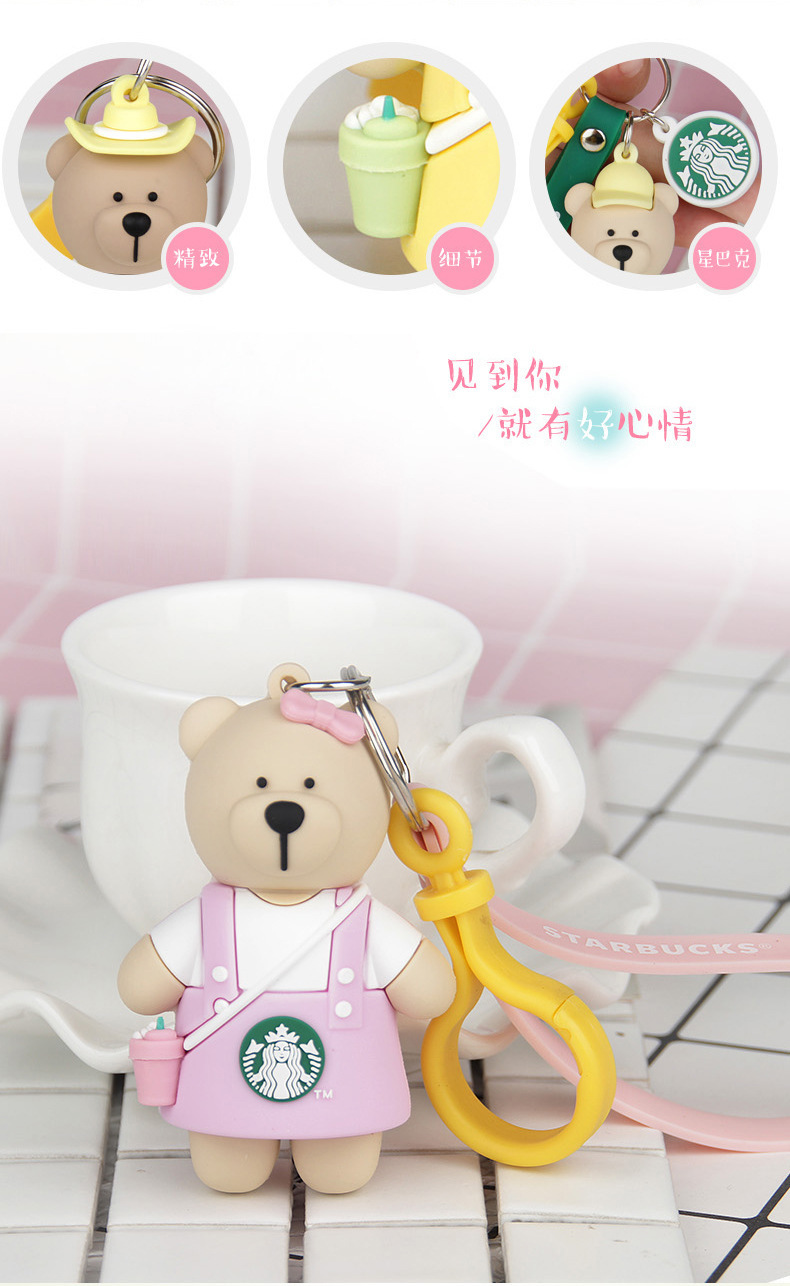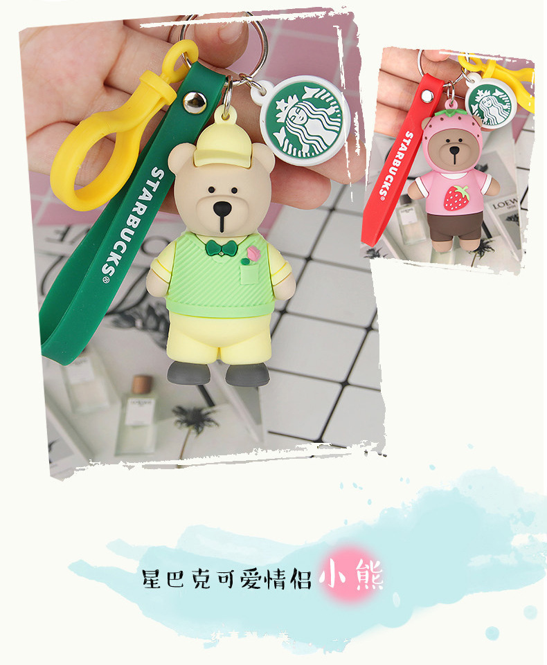 卡通星巴克钥匙扣 可爱奶茶熊情侣小礼物 书包汽车钥匙链挂件批发