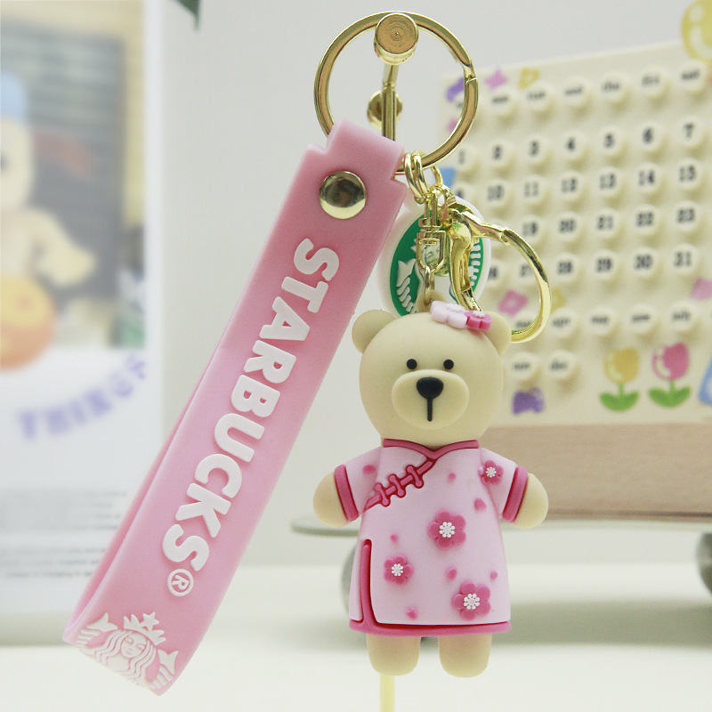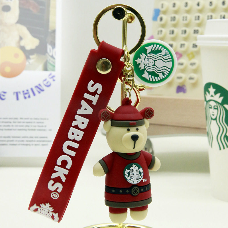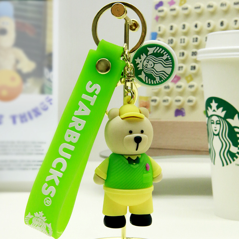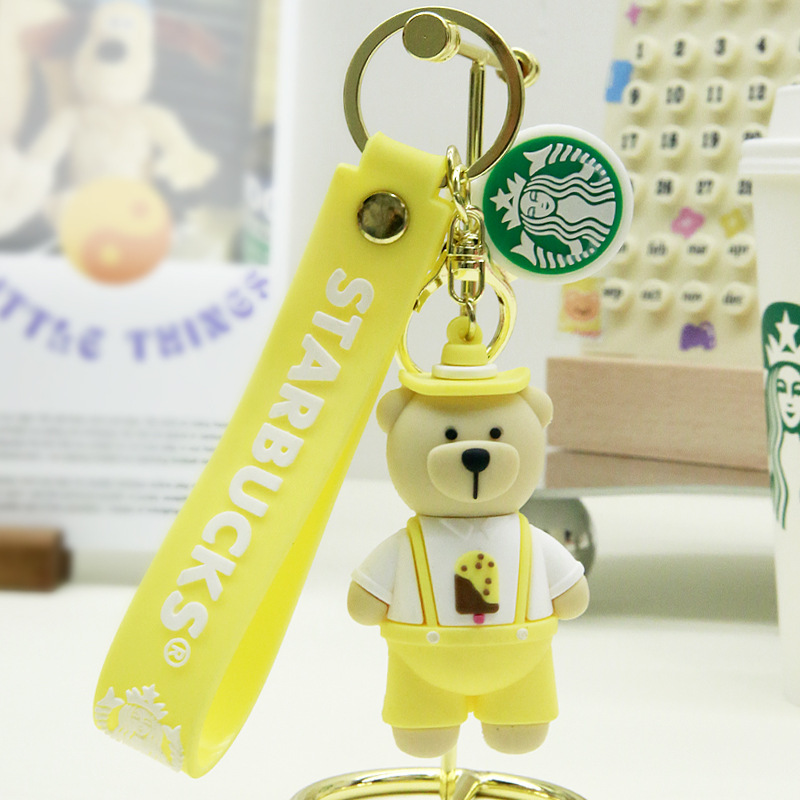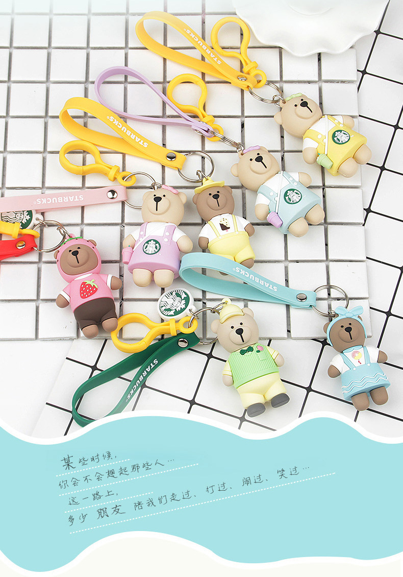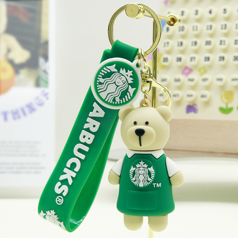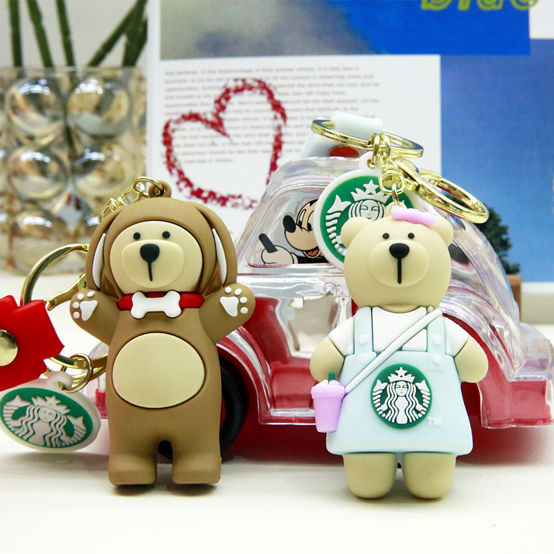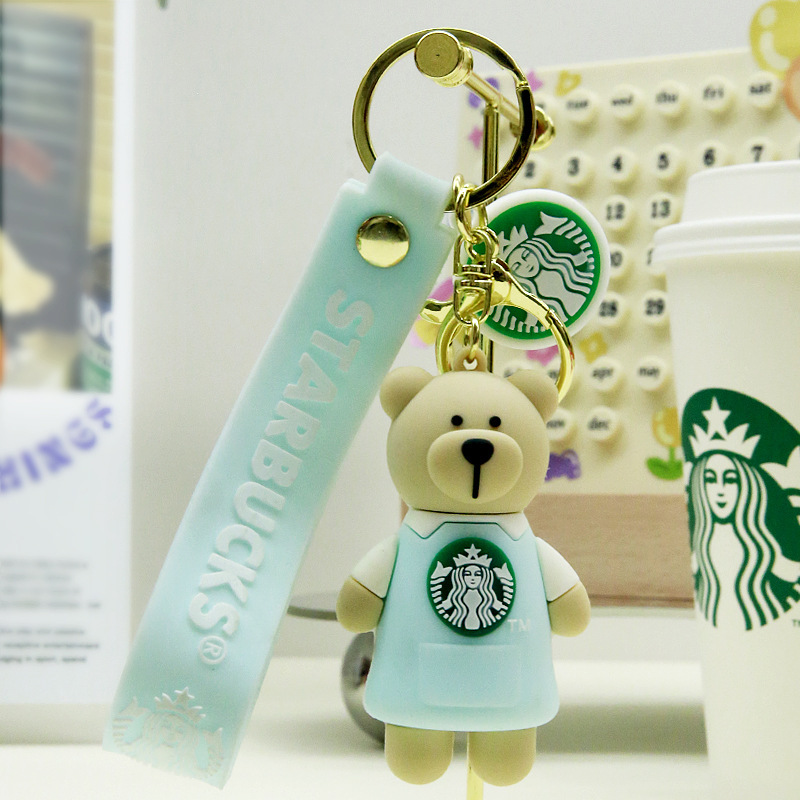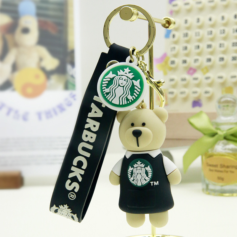 卡通星巴克钥匙扣 可爱奶茶熊情侣小礼物 书包汽车钥匙链挂件批发