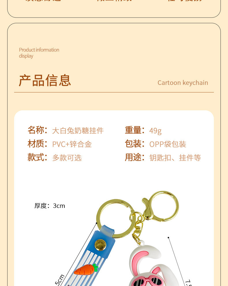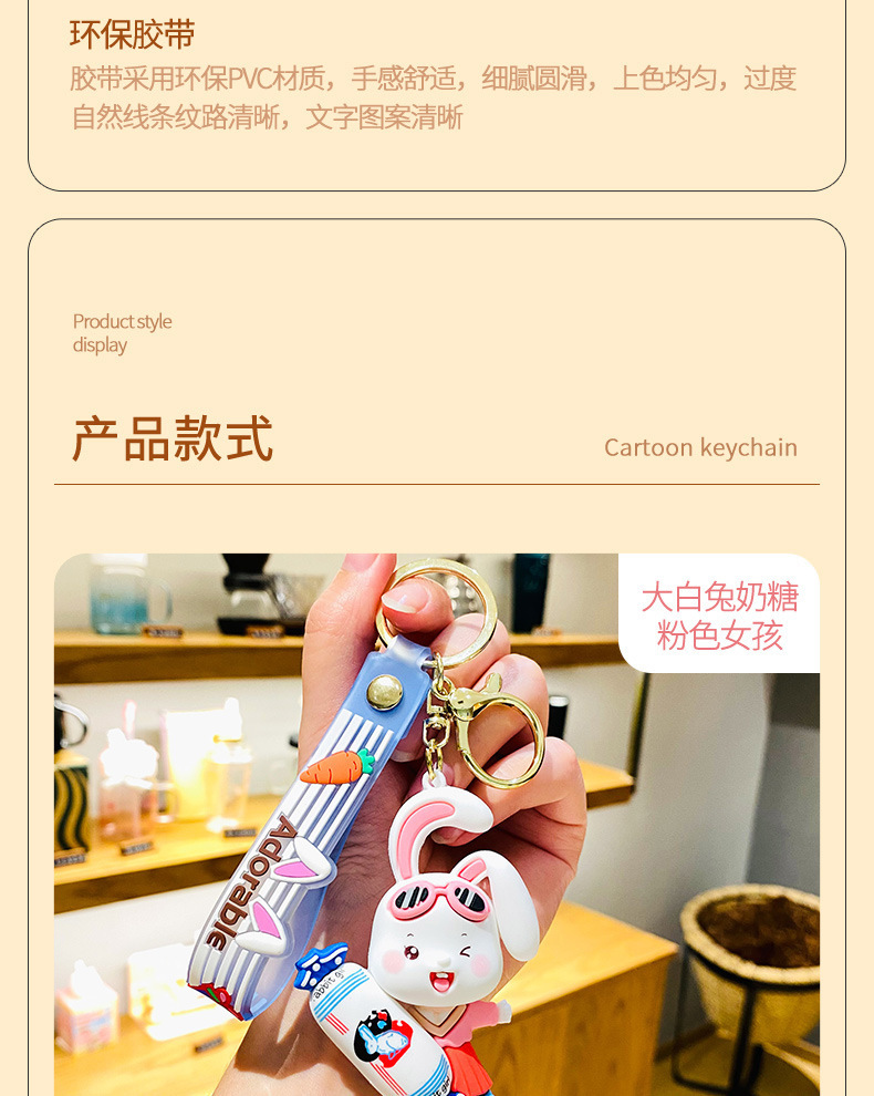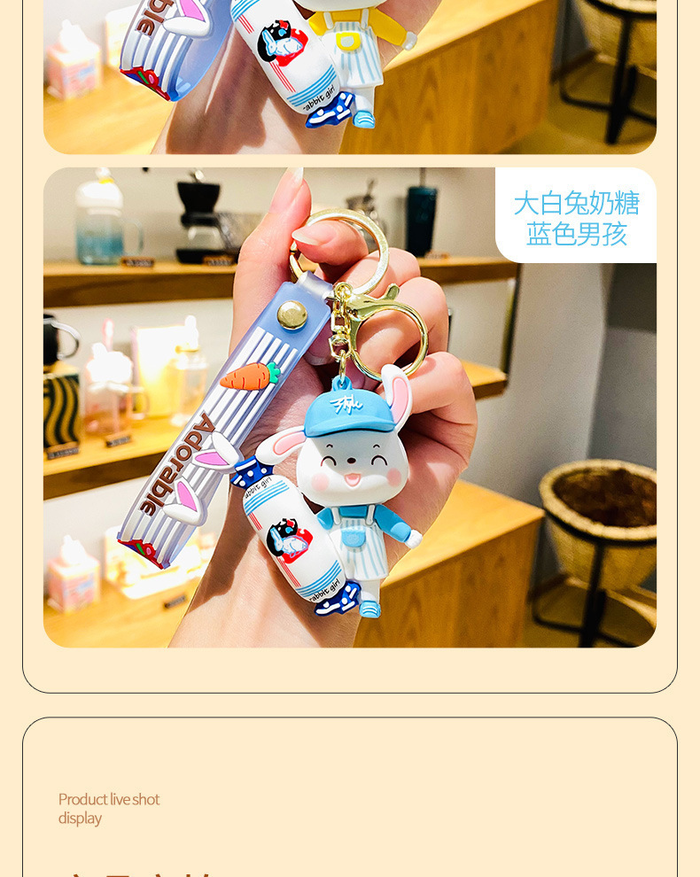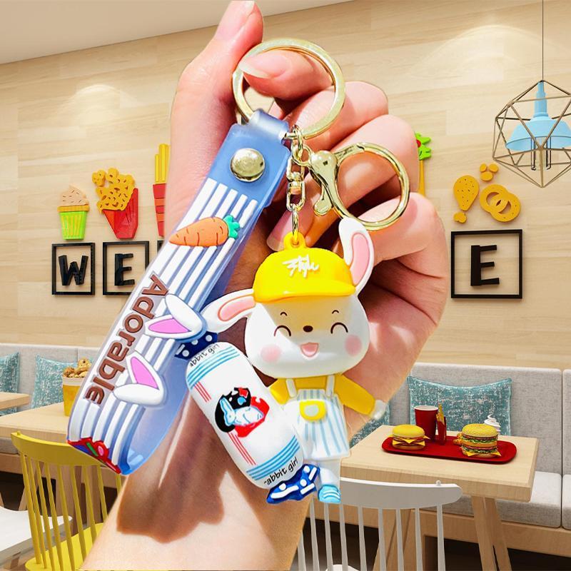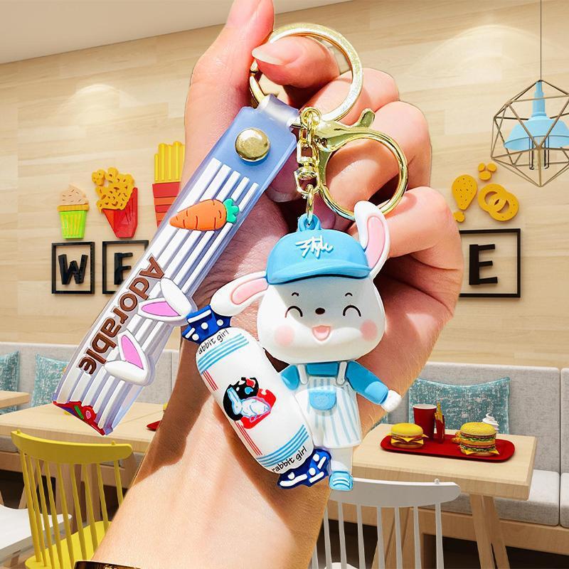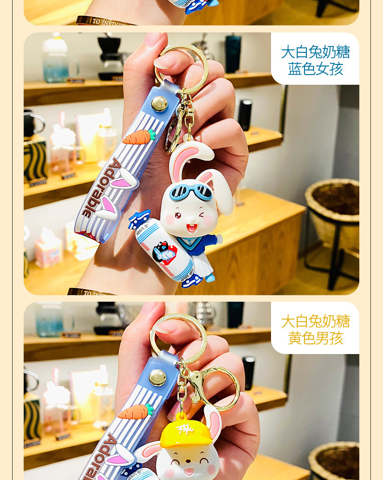 新款大白兔奶糖钥匙扣卡通汽车钥匙链可爱小礼品情侣包包挂件批发