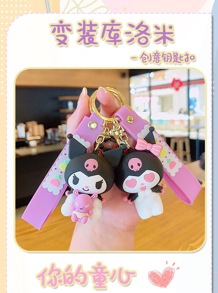 新款三丽鸥变装库洛米钥匙扣可爱背包车钥匙链挂件娃娃机地推礼品