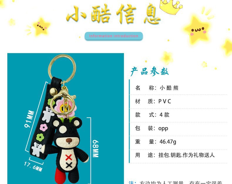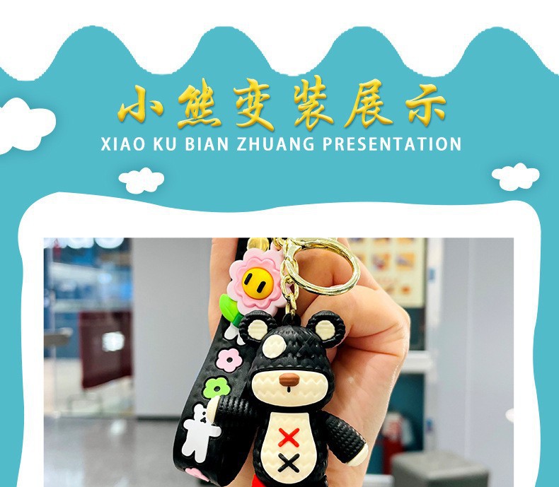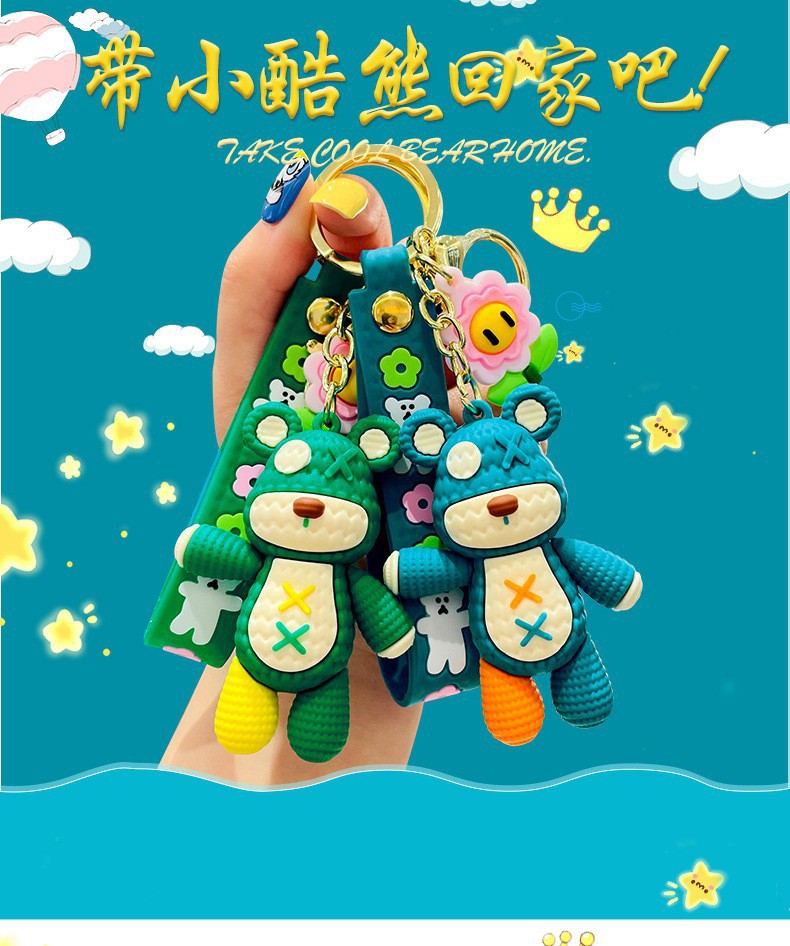 卡通小酷熊钥匙扣可爱暴力熊汽车钥匙链包包挂件饰品娃娃机小礼品