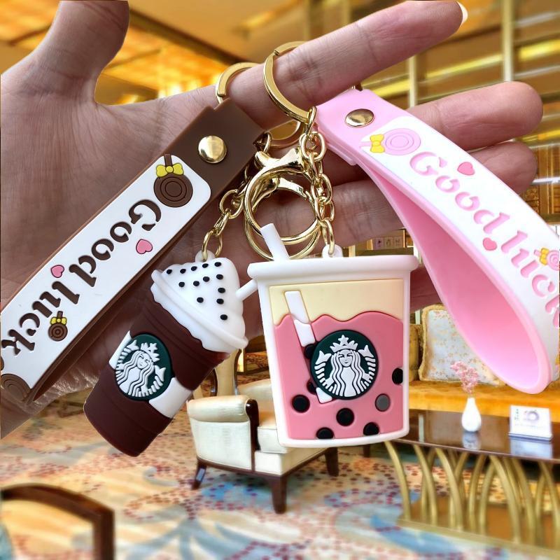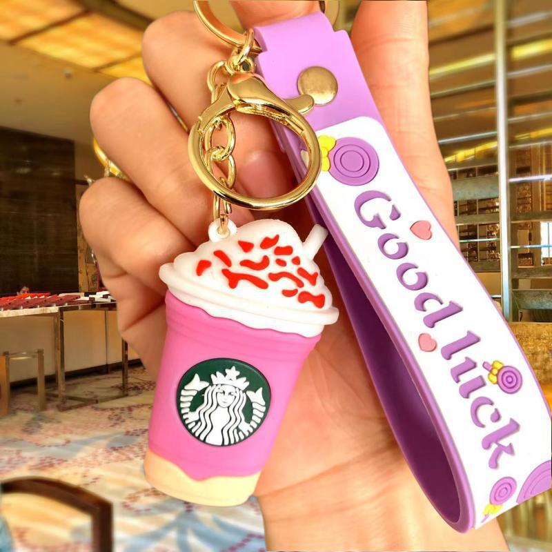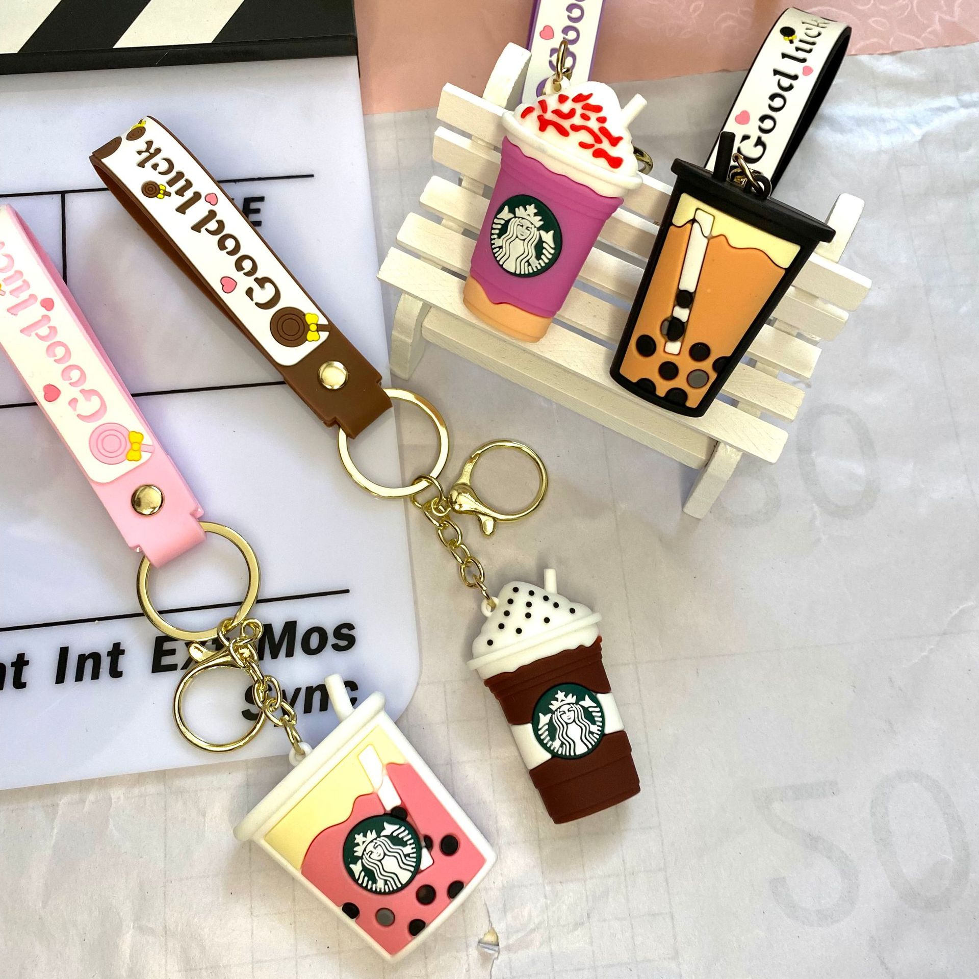 新款星巴克奶茶杯钥匙扣包包挂件汽车钥匙链圈书包配饰小礼品批发