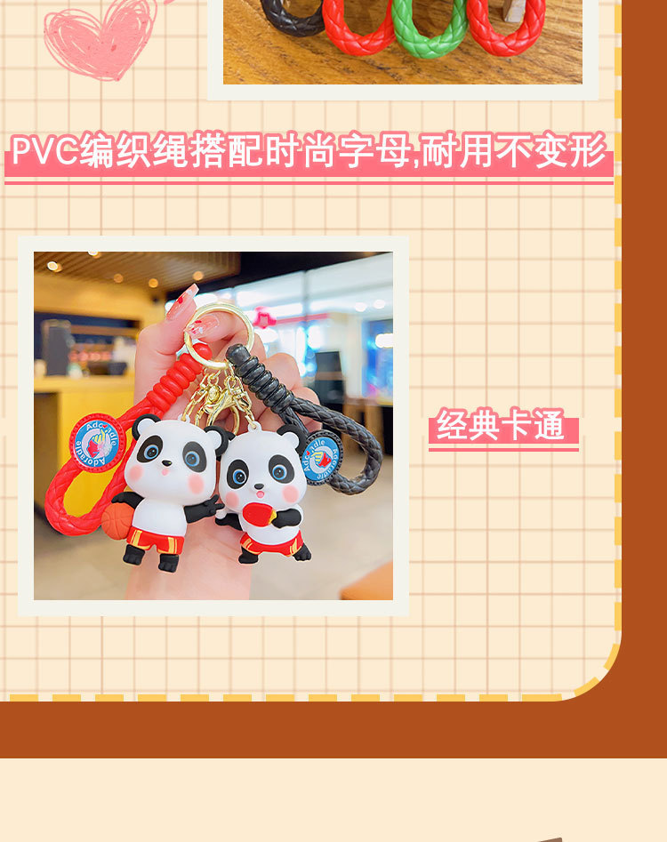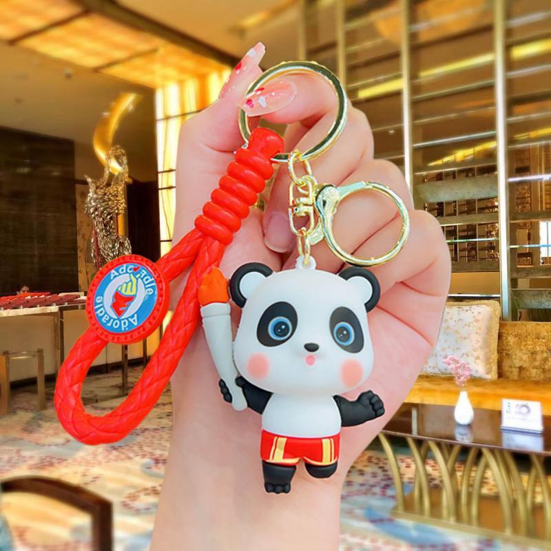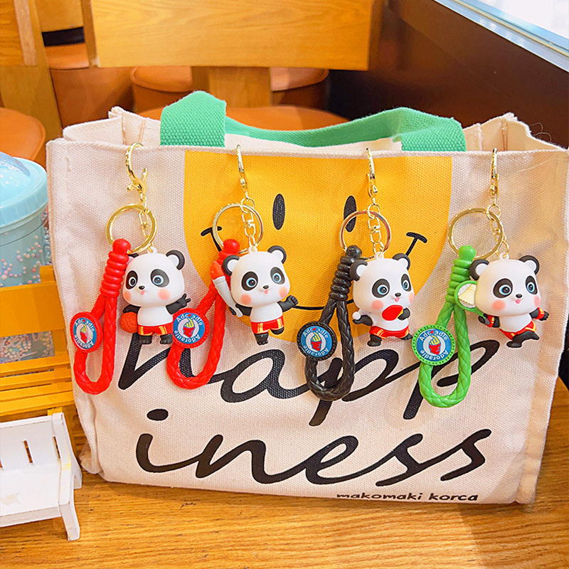 国潮运动熊猫卡通公仔钥匙扣 可爱包包挂件 汽车钥匙链情侣小礼品