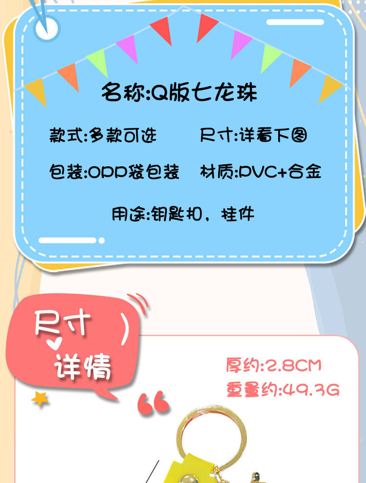 新款卡通Q版七龙珠动漫钥匙扣 书包挂件孙悟空公仔男生汽车钥匙链