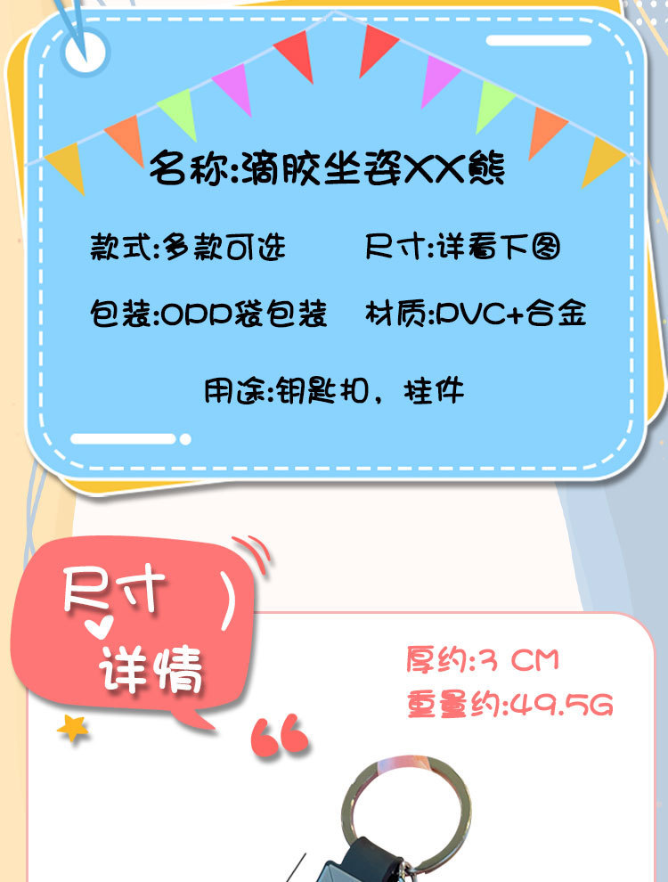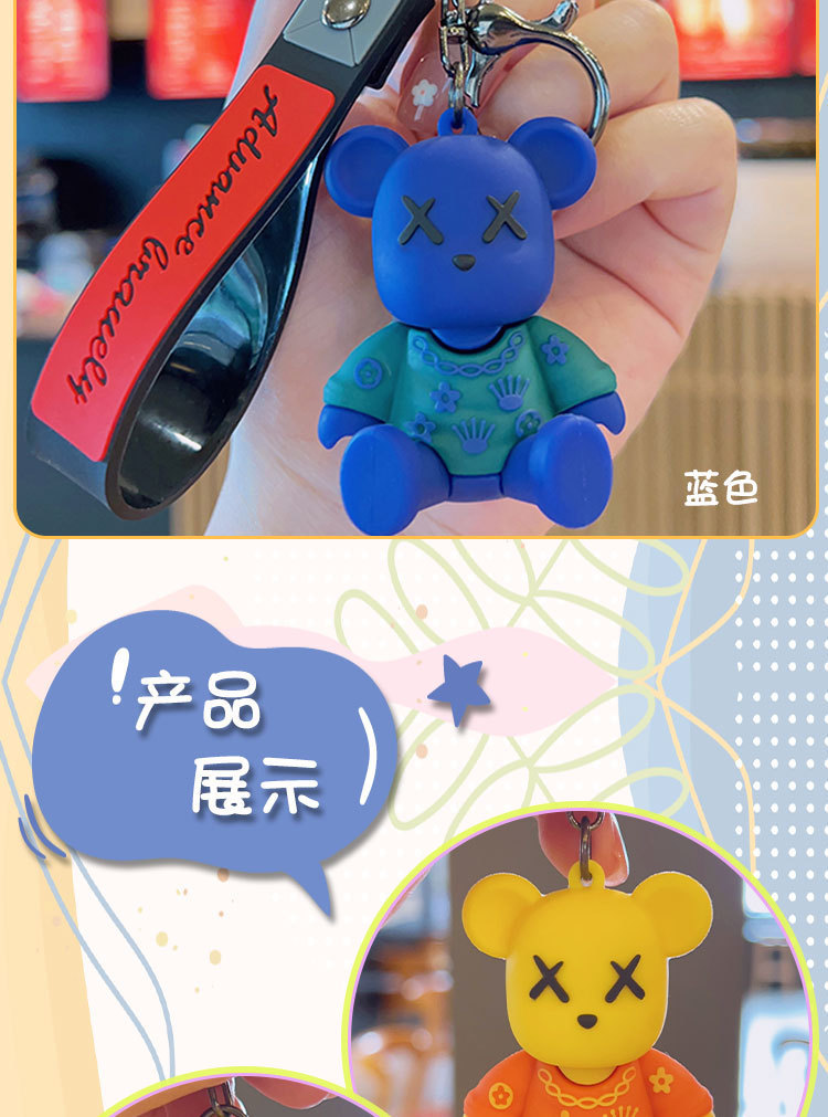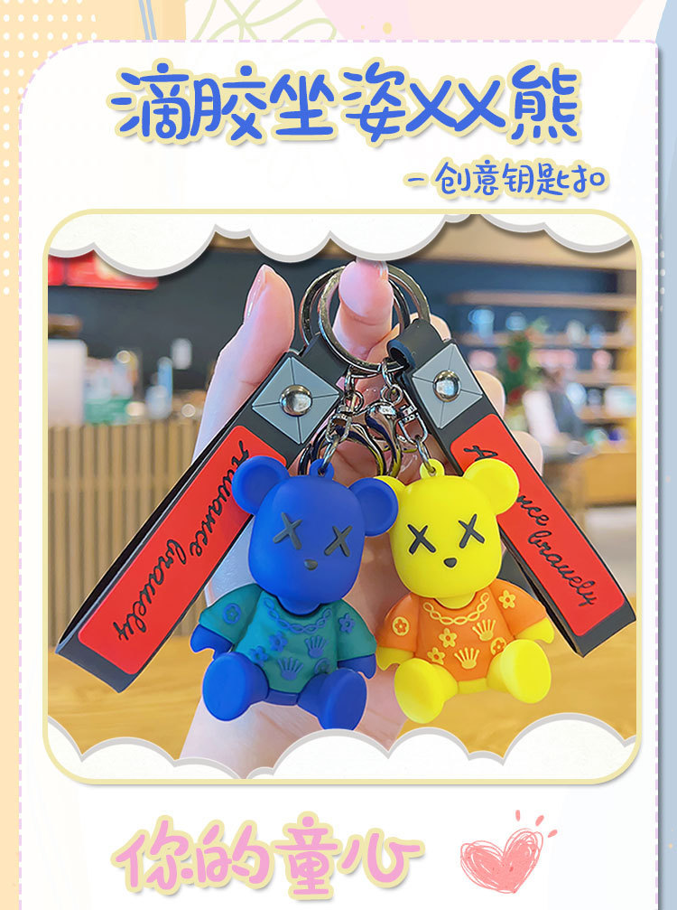 新款卡通XX小熊钥匙扣书包背包挂饰汽车钥匙链挂件地推小礼品批发