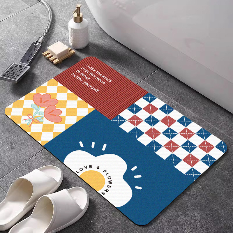 红日浴室垫 简约轻奢硅藻泥吸水垫 科技布橡胶防滑垫