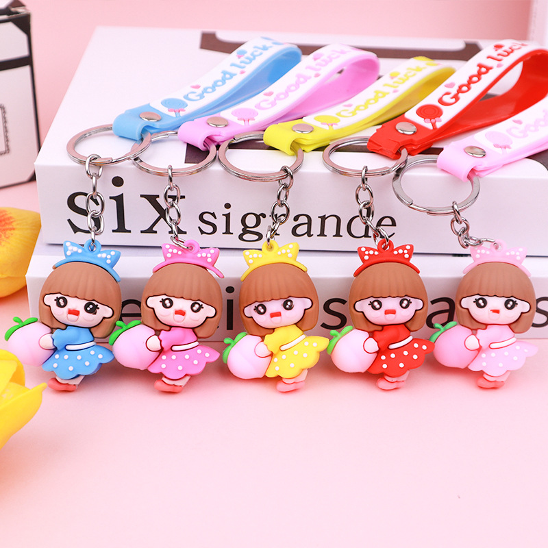 卡通水果桃子女孩钥匙扣包包挂件可爱装饰品挂饰钥匙链小礼品现货