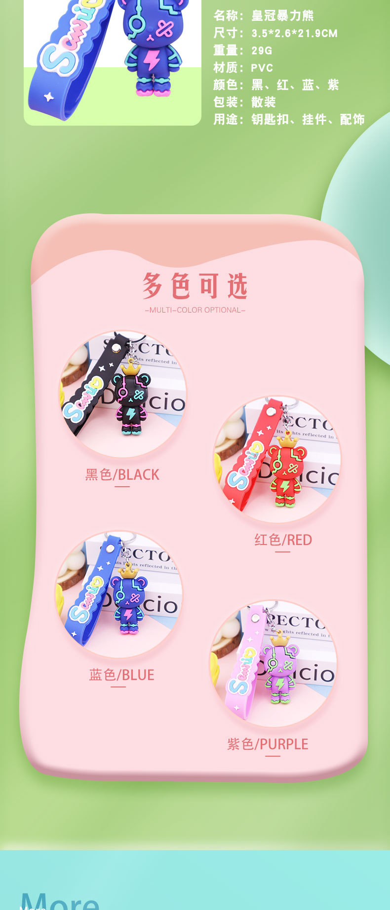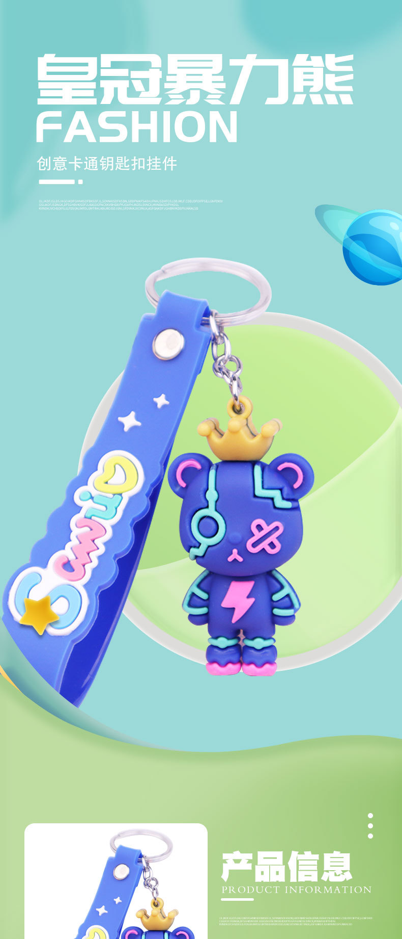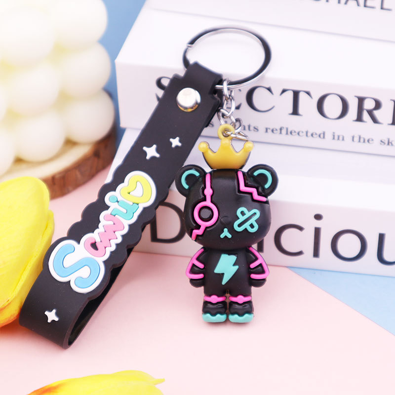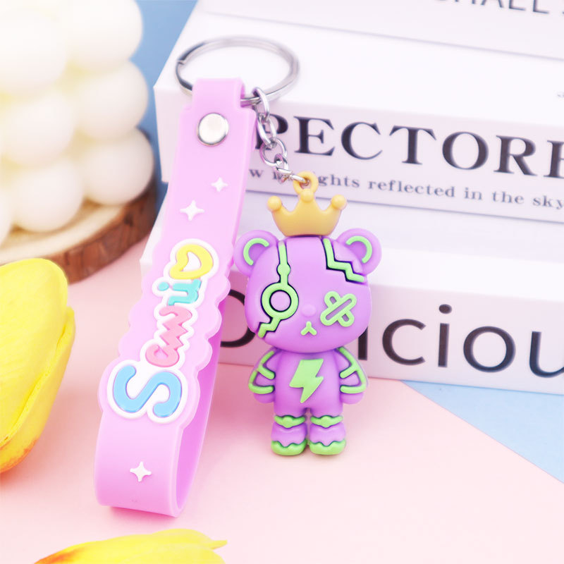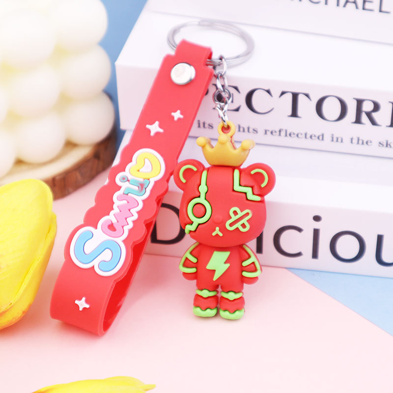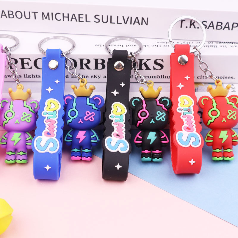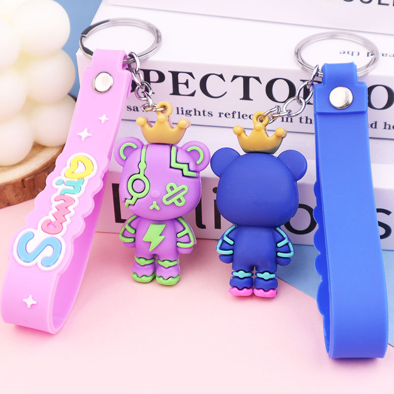 皇冠暴力熊钥匙扣硅胶钥匙链情侣书包汽车挂件创意卡通小公仔礼品