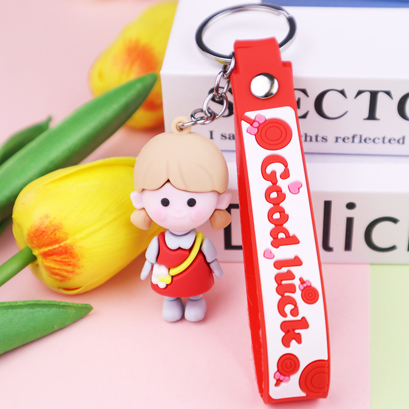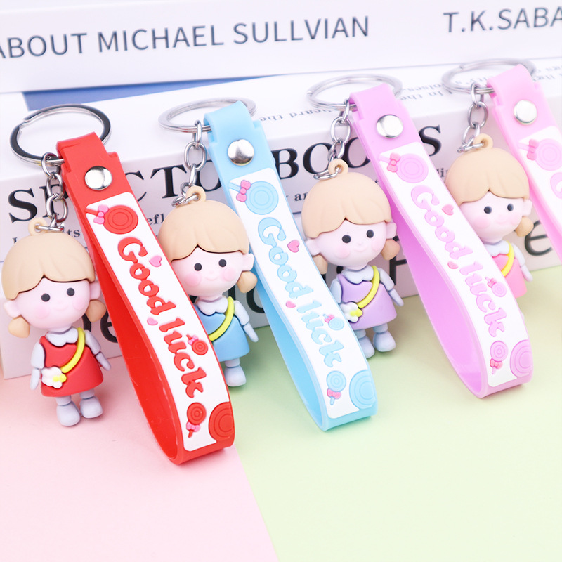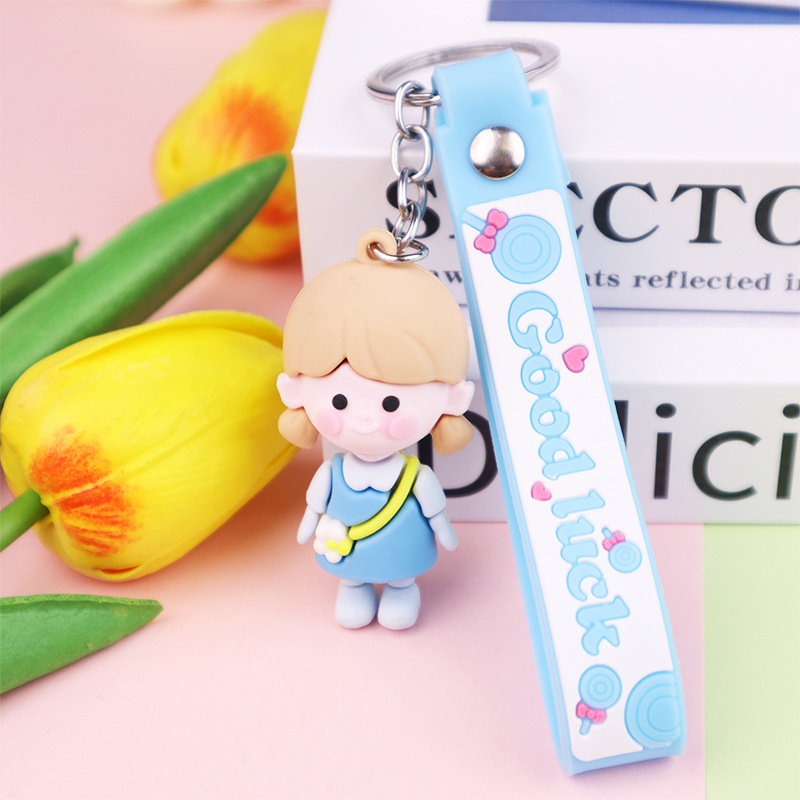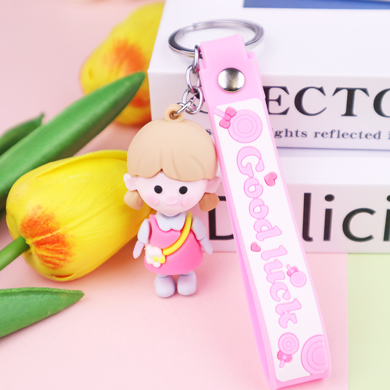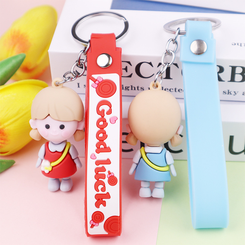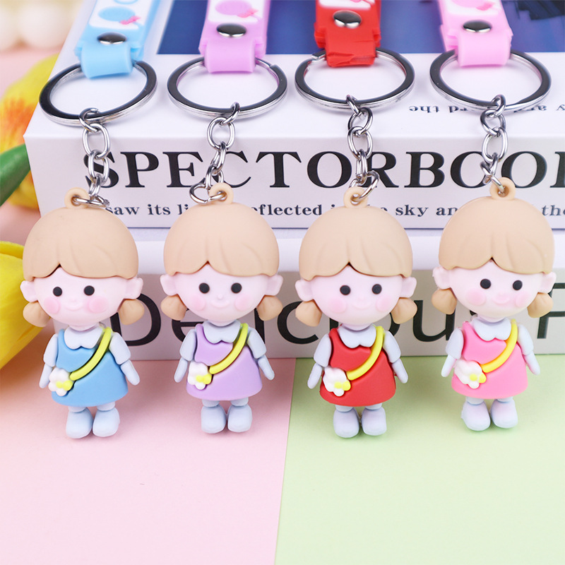 可爱卡通斜跨包包小女孩钥匙扣情侣汽车公仔挂件学生书包挂饰礼品