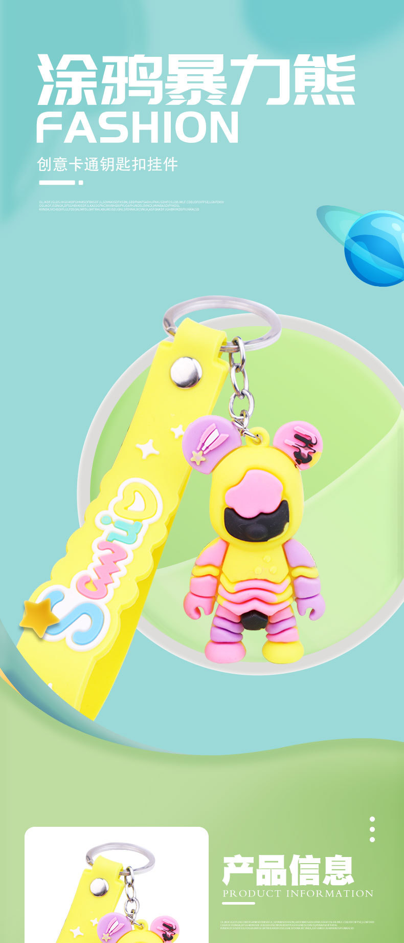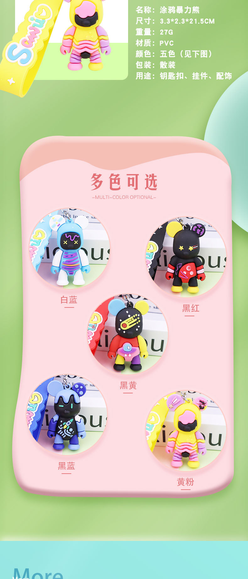 创意涂鸦暴力熊钥匙扣挂件情侣包包汽车挂饰卡通小公仔配件钥匙链