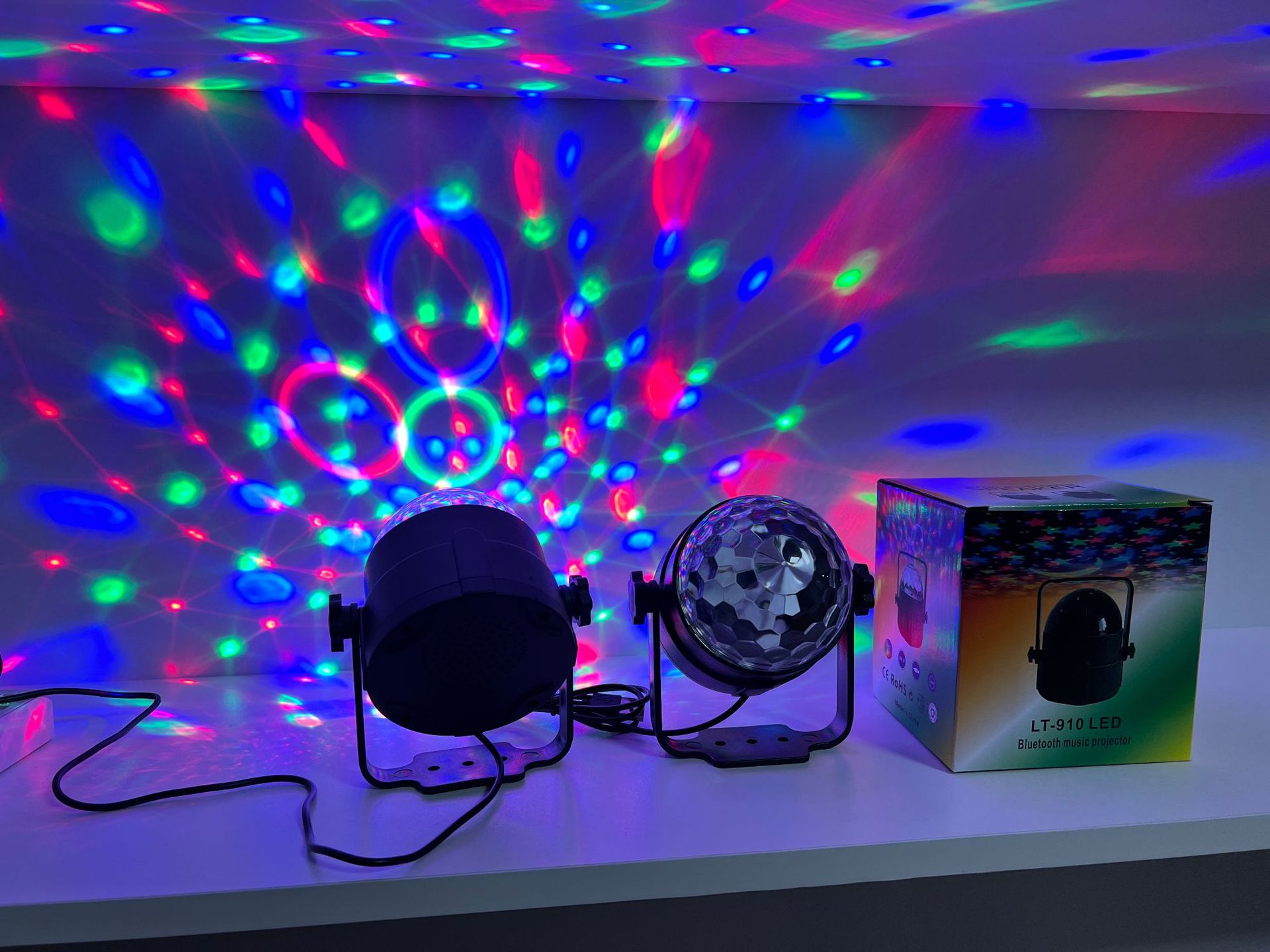 蓝牙音乐小魔球LED车载七彩灯水晶魔球灯USB支架音乐氛围灯