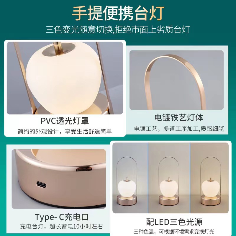Led充电触摸护眼台灯小夜灯家用摆摊宿舍床头桌面户外手提露营灯