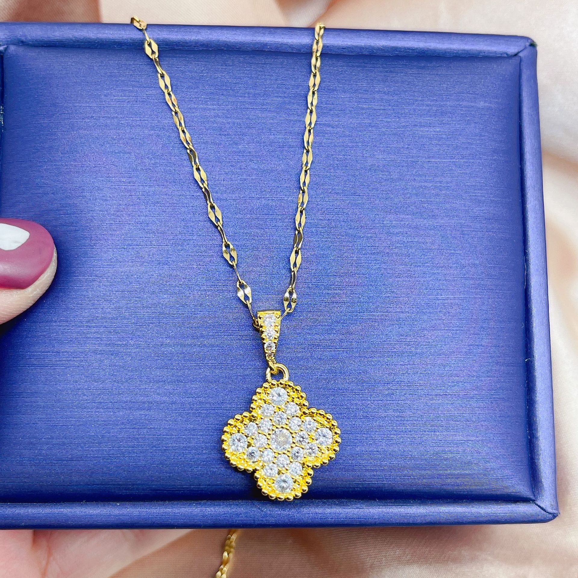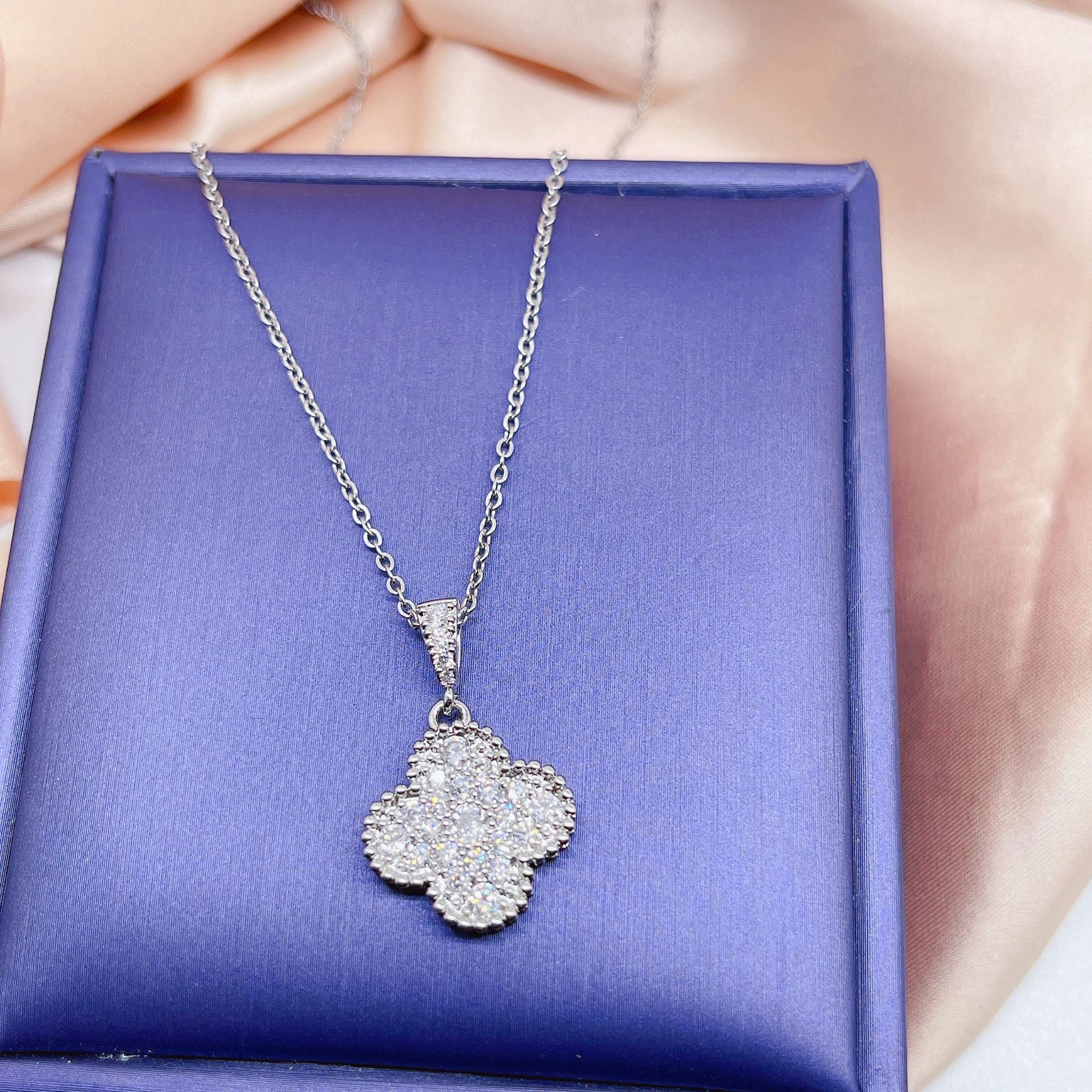 抖音爆款大号四叶草钛钢项链铜微镶满钻轻奢时尚小众百搭项链女