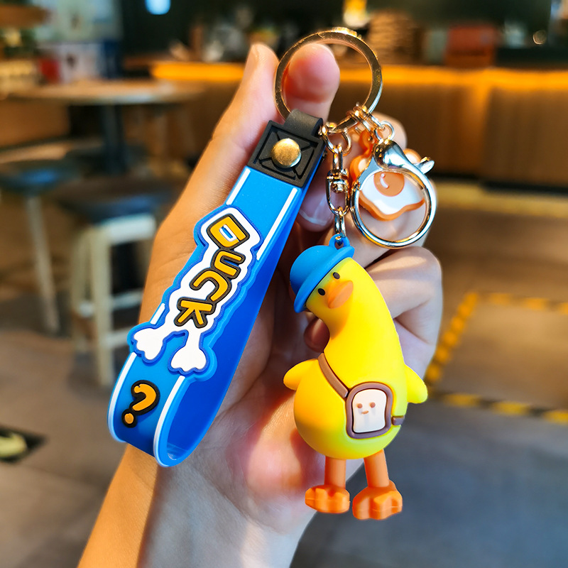 卡通可爱搞怪歪头鸭软胶pvc钥匙扣少女心情侣书包挂件小礼品批发