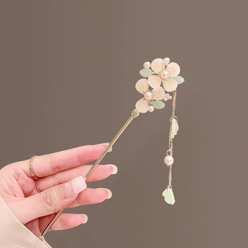 古风清新玲珑花瓣流苏发簪复古气质盘发簪子汉服步摇头饰发饰批发