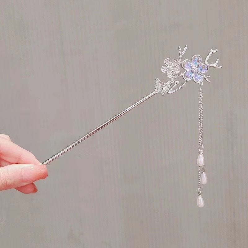 新中式幻彩梅花蝴蝶流苏发簪高级感气质盘发簪子步摇头饰发饰古风