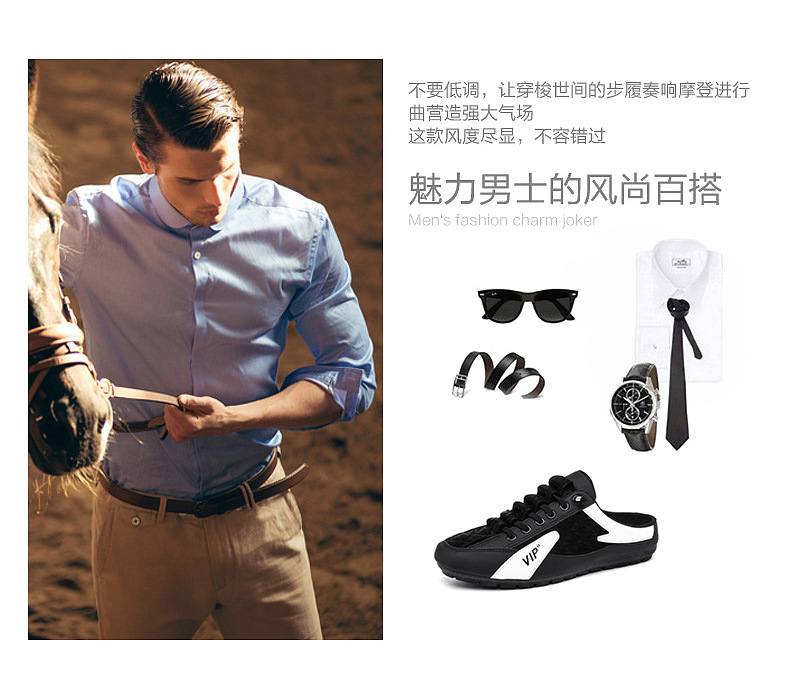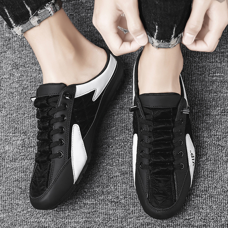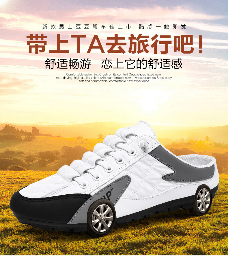 男士休闲鞋夏季透气半托豆豆鞋一脚蹬懒人套脚乐福鞋男拖鞋潮流