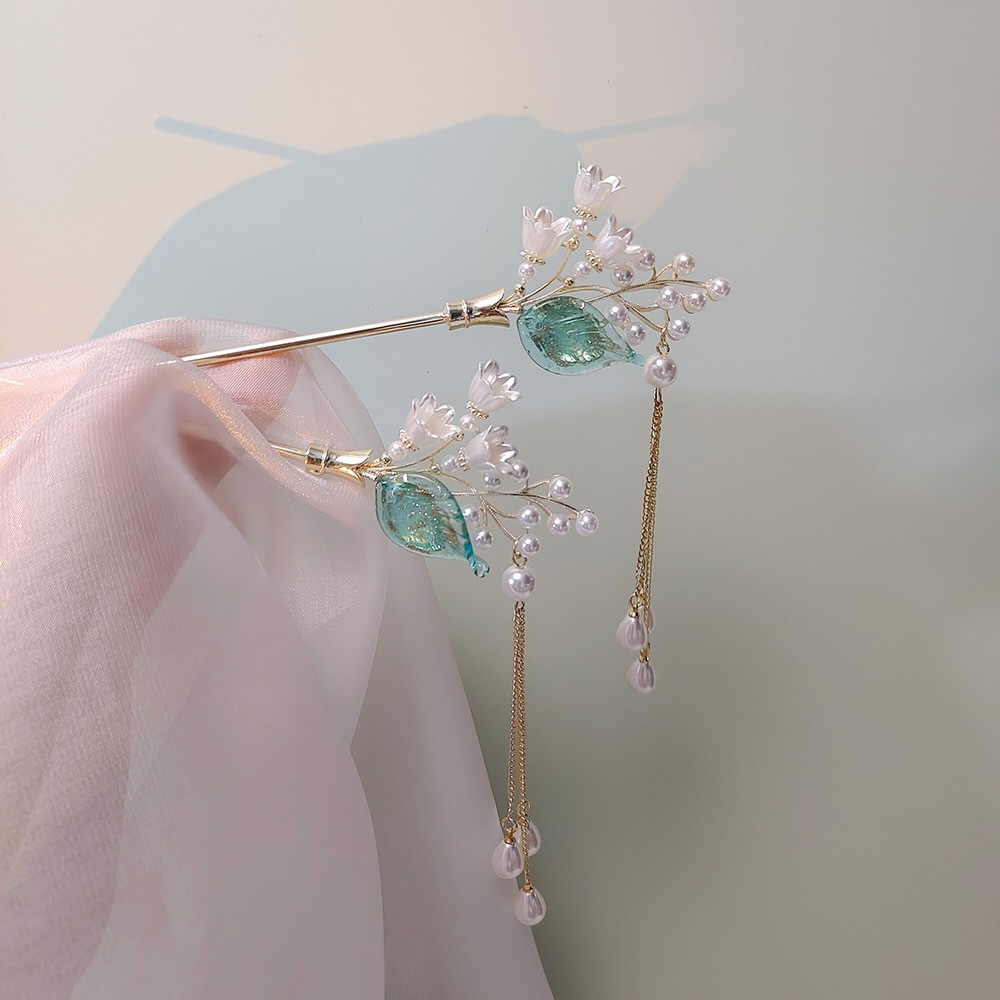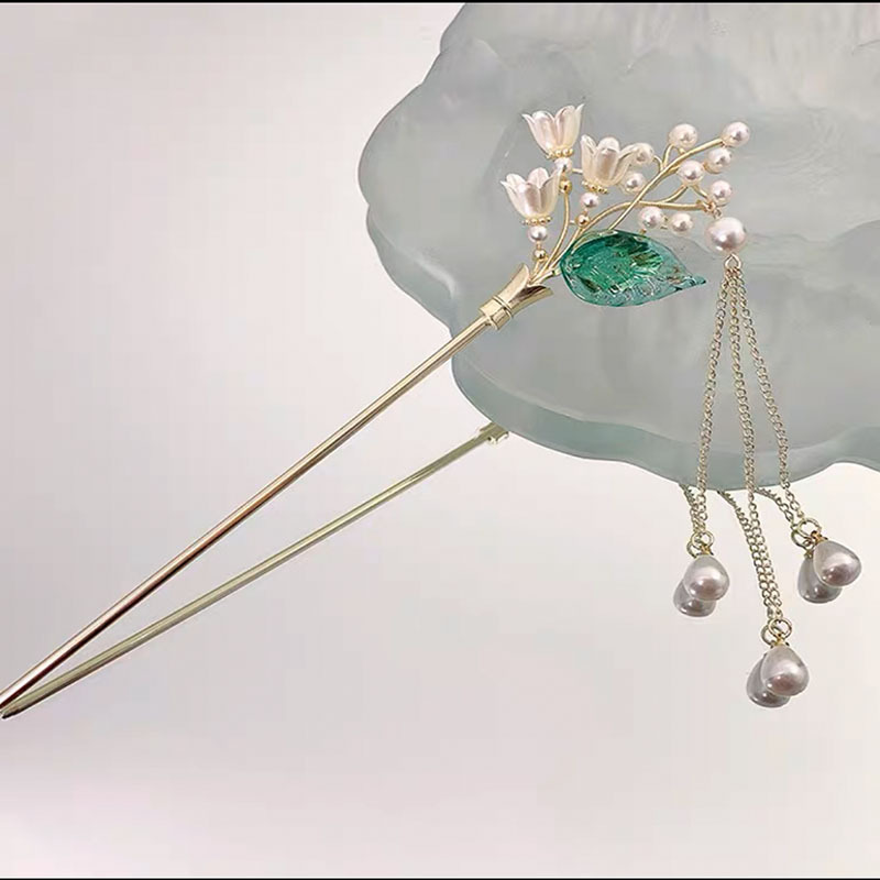 新款琉璃花朵流苏发簪古风后脑勺盘发簪子复古气质发钗头饰发饰