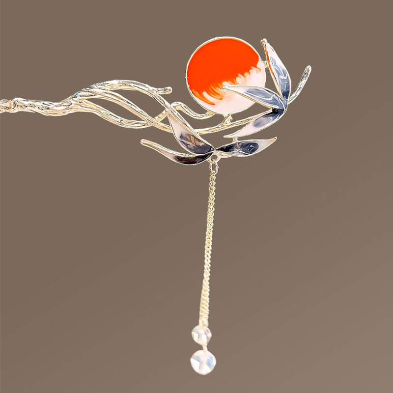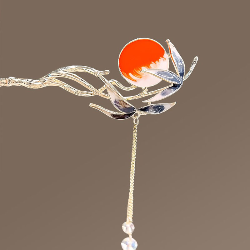 落日余晖发簪仙鹤古风簪子新中式汉服配饰步摇流苏后脑勺盘发发钗