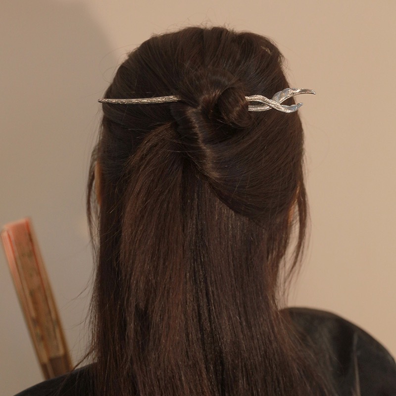 新中式冷淡风鱼叉发簪古风气质后脑勺盘发簪子复古发钗头饰发饰