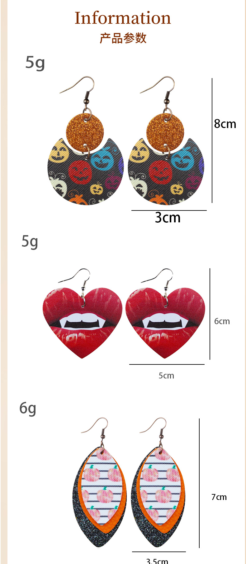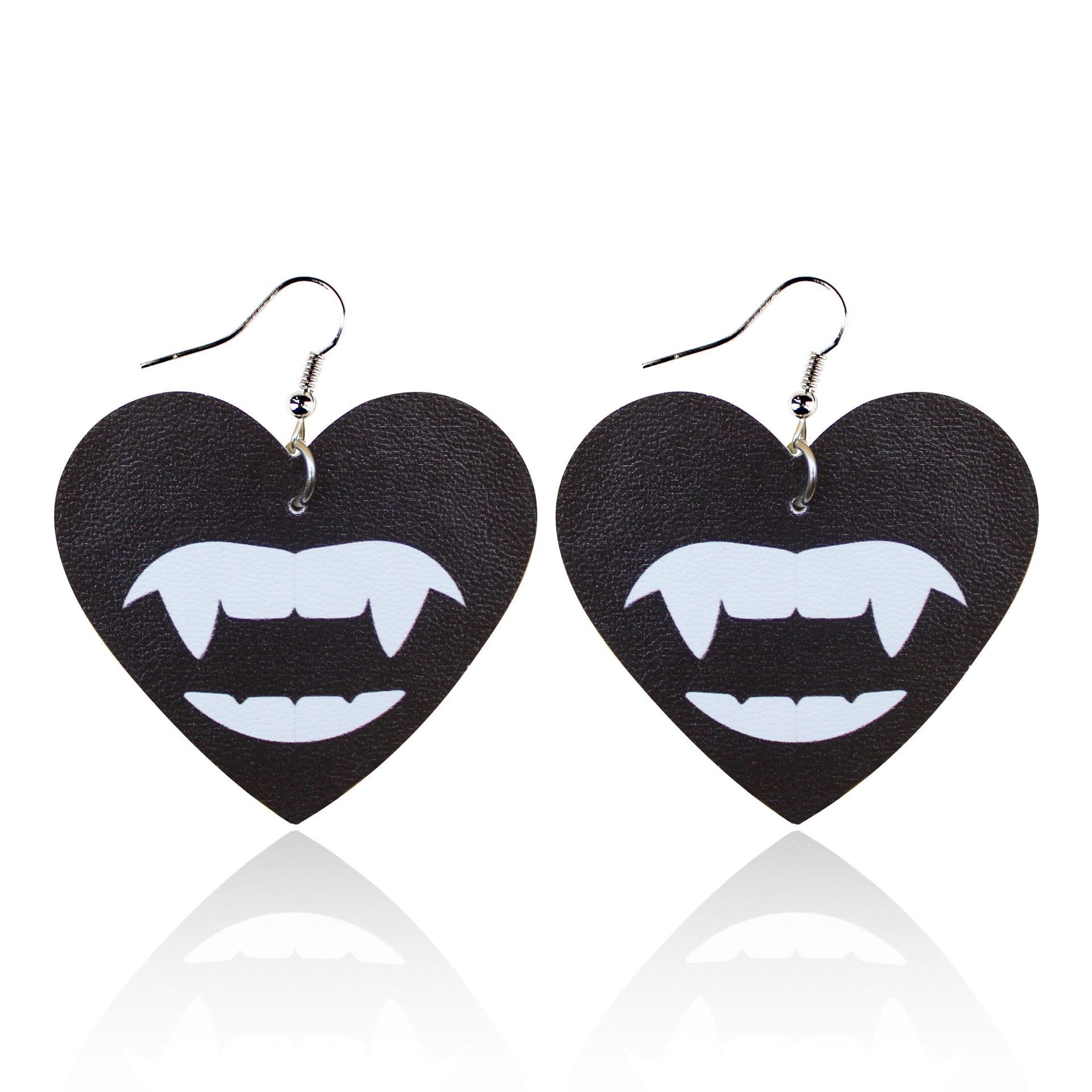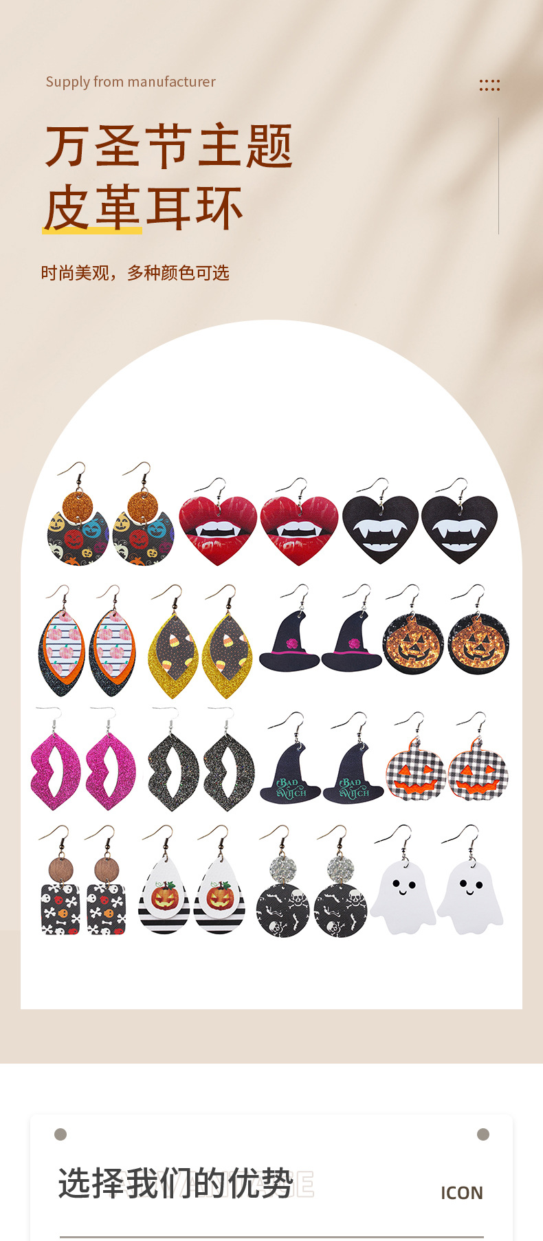 新款多种万圣节皮革卡通南瓜幽灵爱心吸血鬼嘴唇搞怪耳环跨境欧美