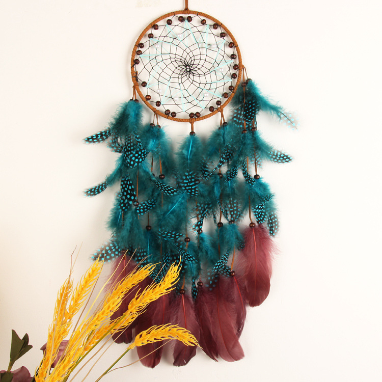 新款复古珍珠羽毛捕梦网风铃欧美跨境家居装饰品墙壁挂饰节日礼物