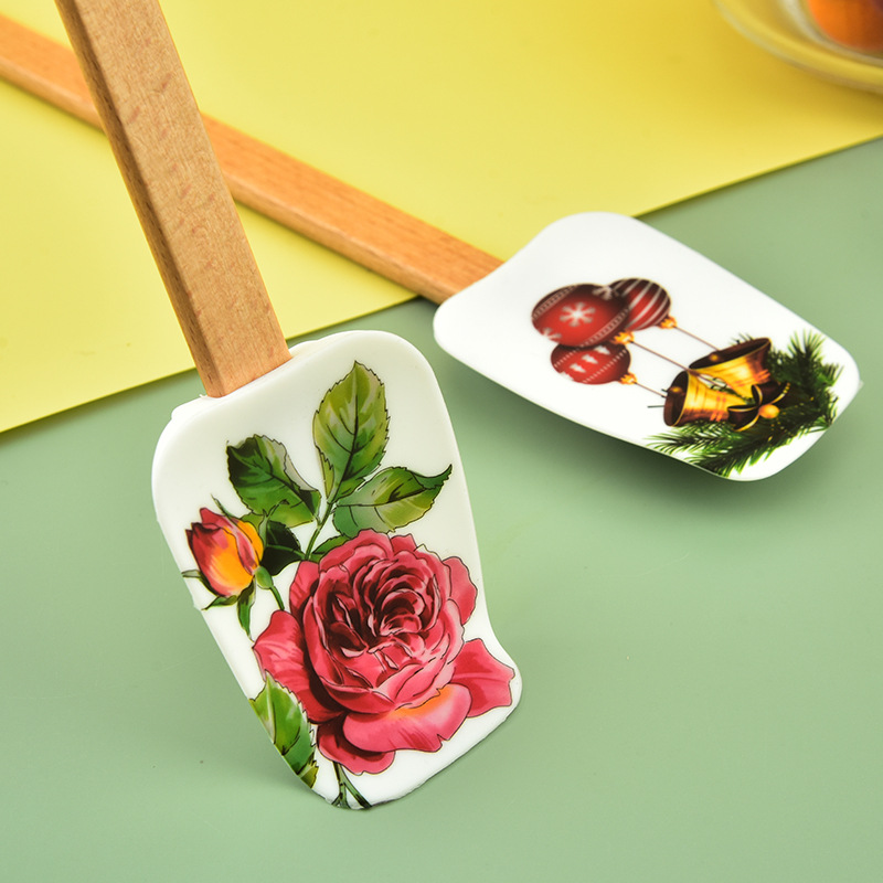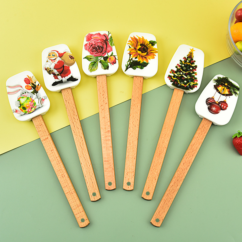 厨具 分体 硅胶圣诞 印花木柄硅胶奶油刮刀 新款厨房烘焙牛油刮