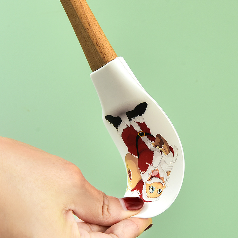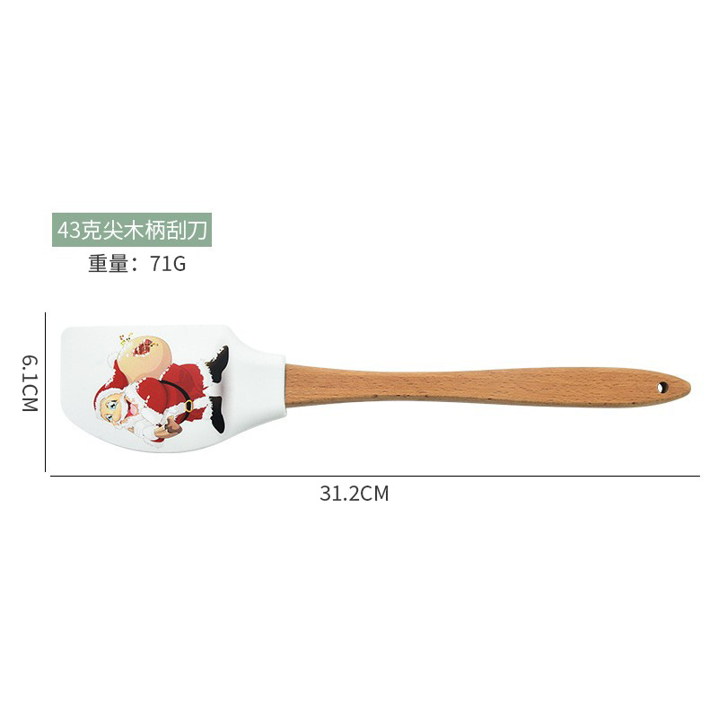 厨具 分体 硅胶圣诞 印花木柄 奶油刮刀烘培工具牛油刮蛋糕刮刀