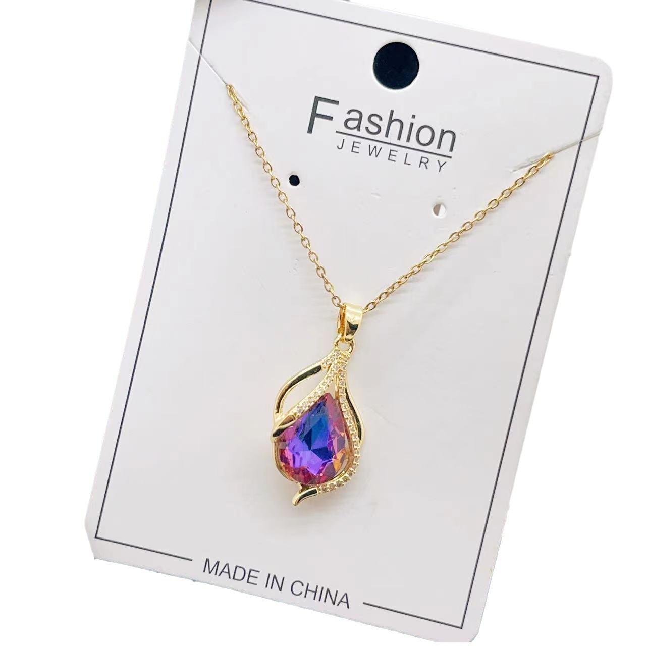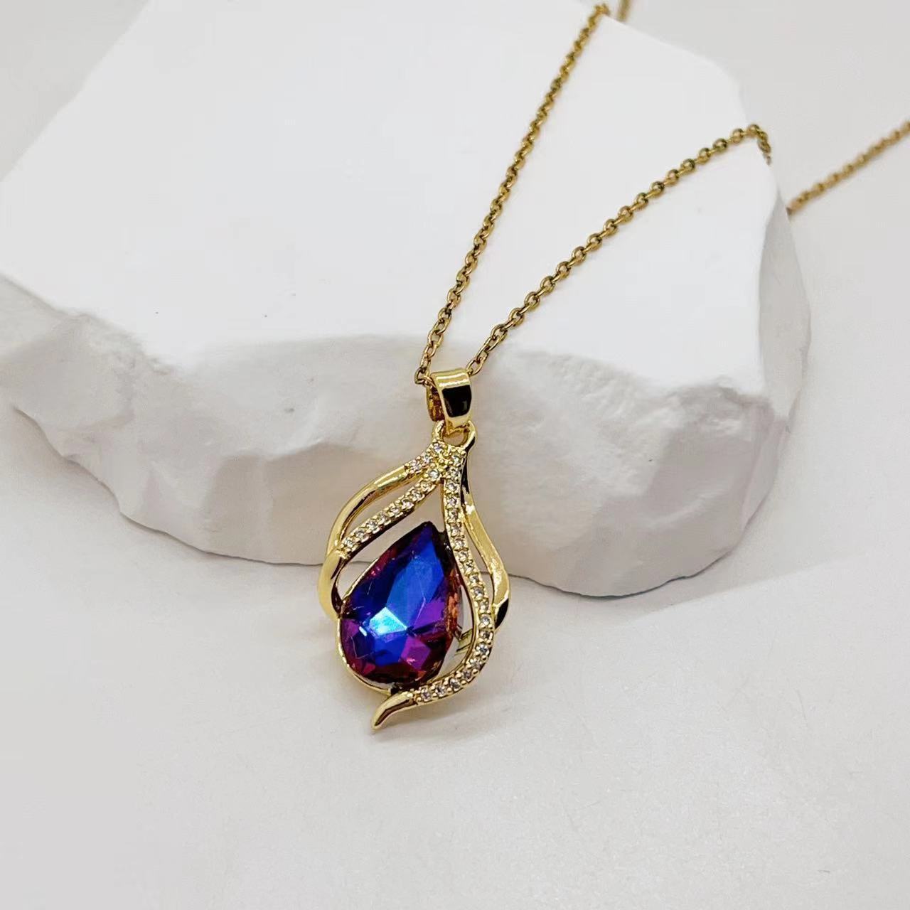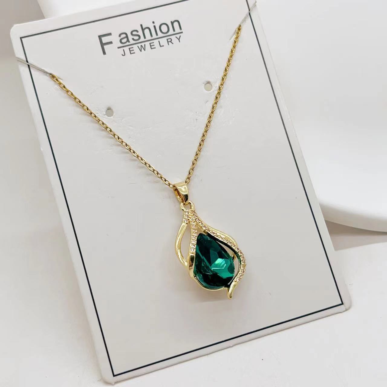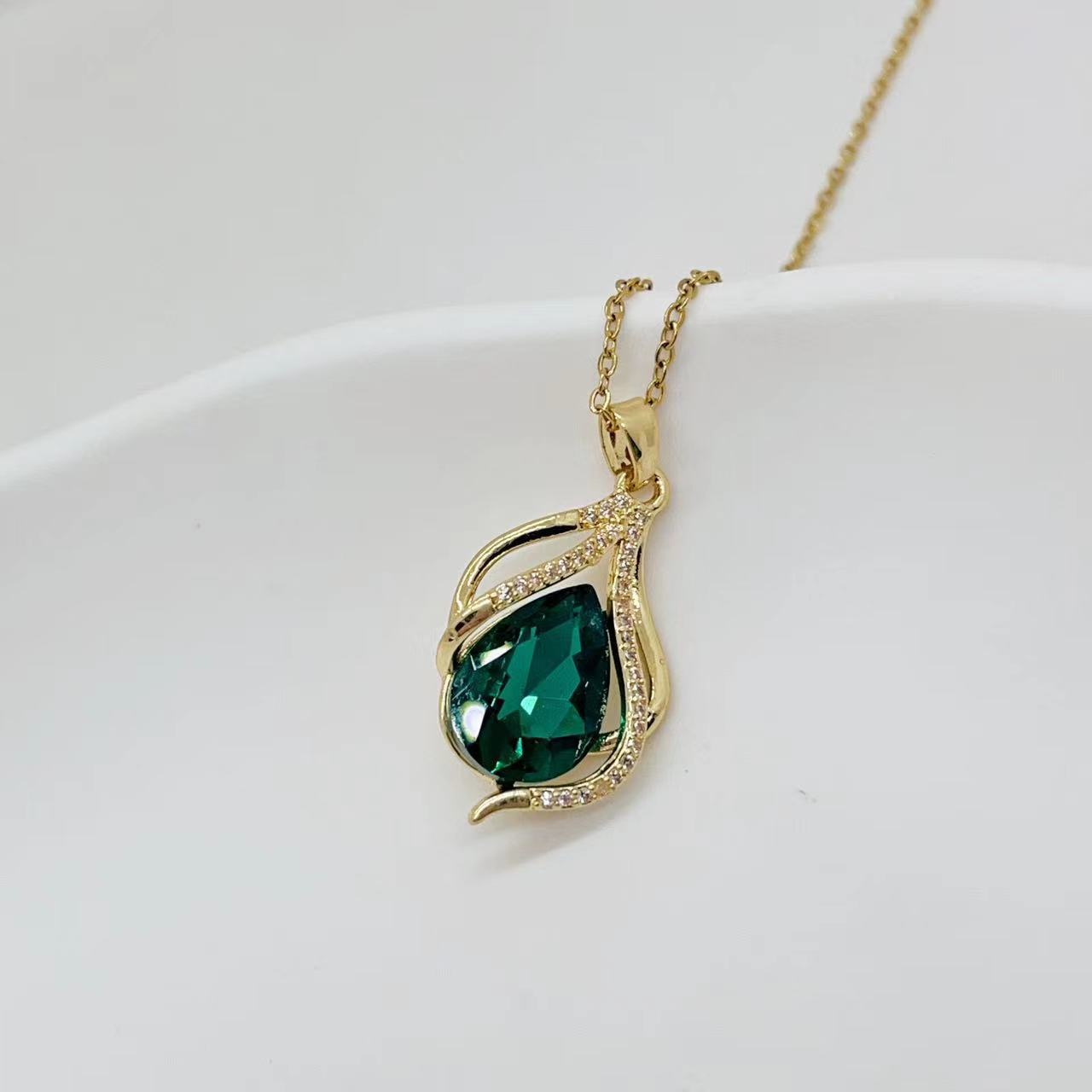 欧美跨境时尚轻奢铜镀18K金奢华绿水晶项链女新款锁骨链小众设计