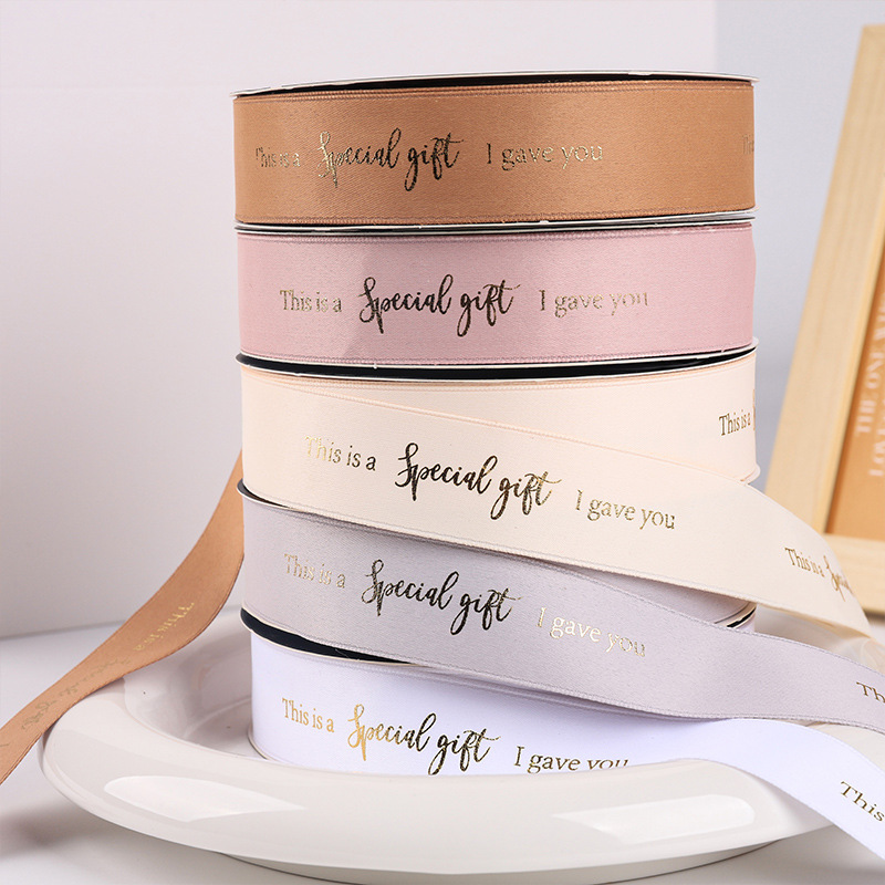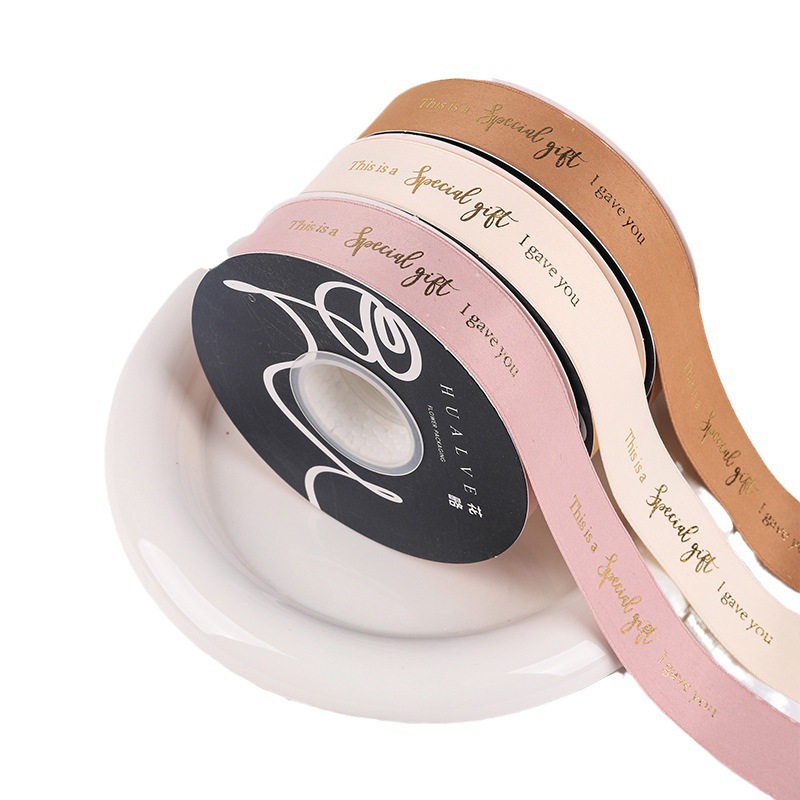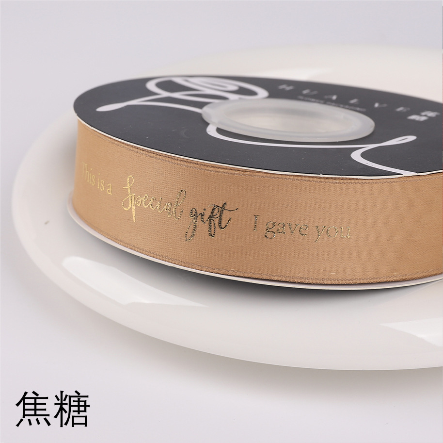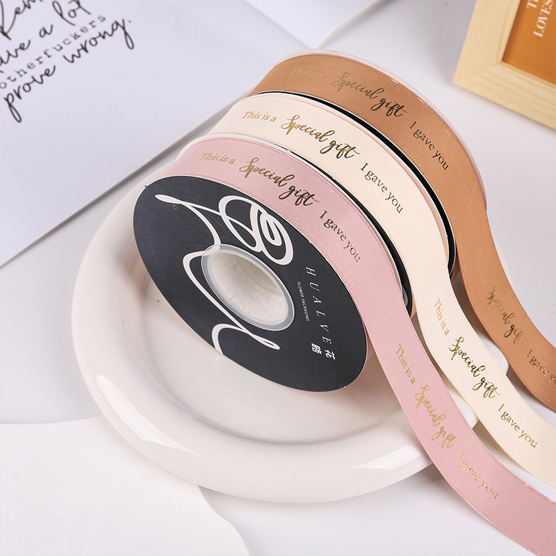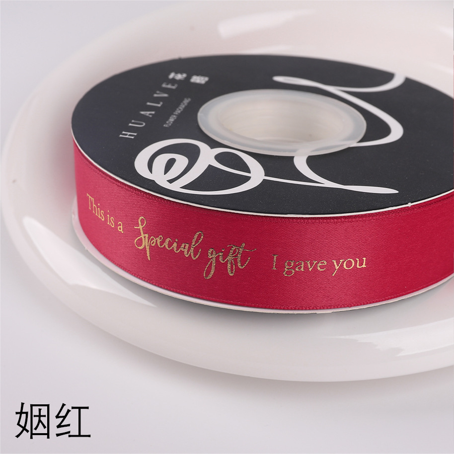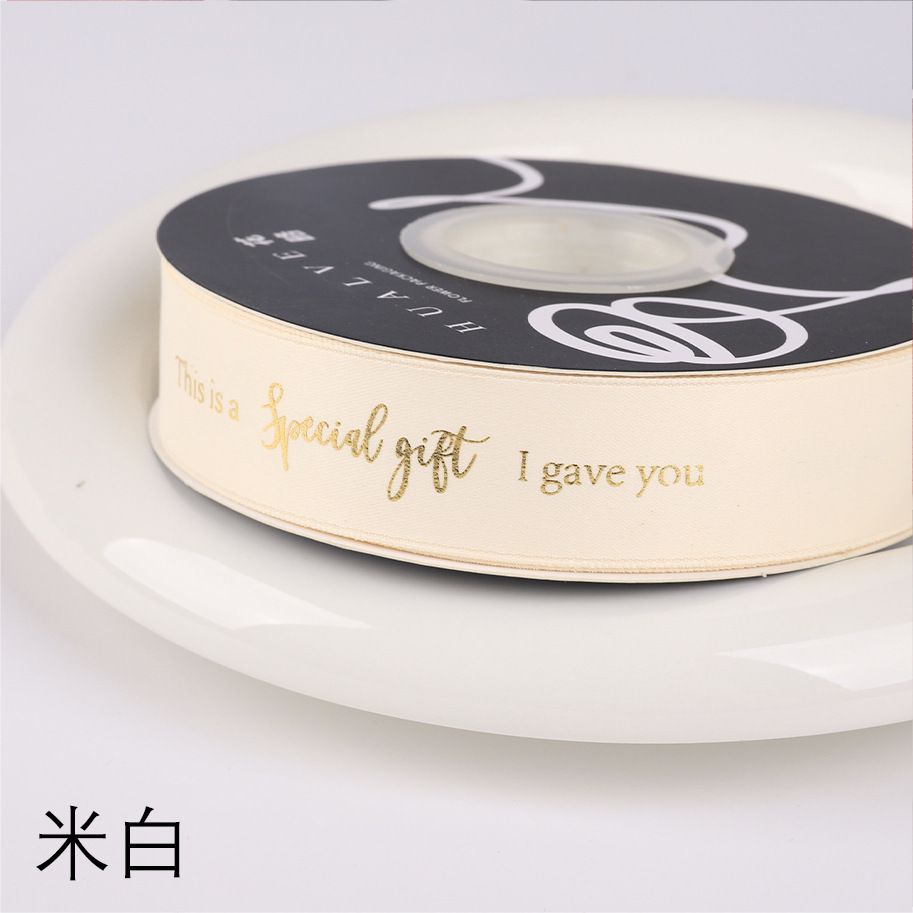 花束包装烫金丝带七夕节特别的礼物包花材料涤纶鲜花包装英文织带