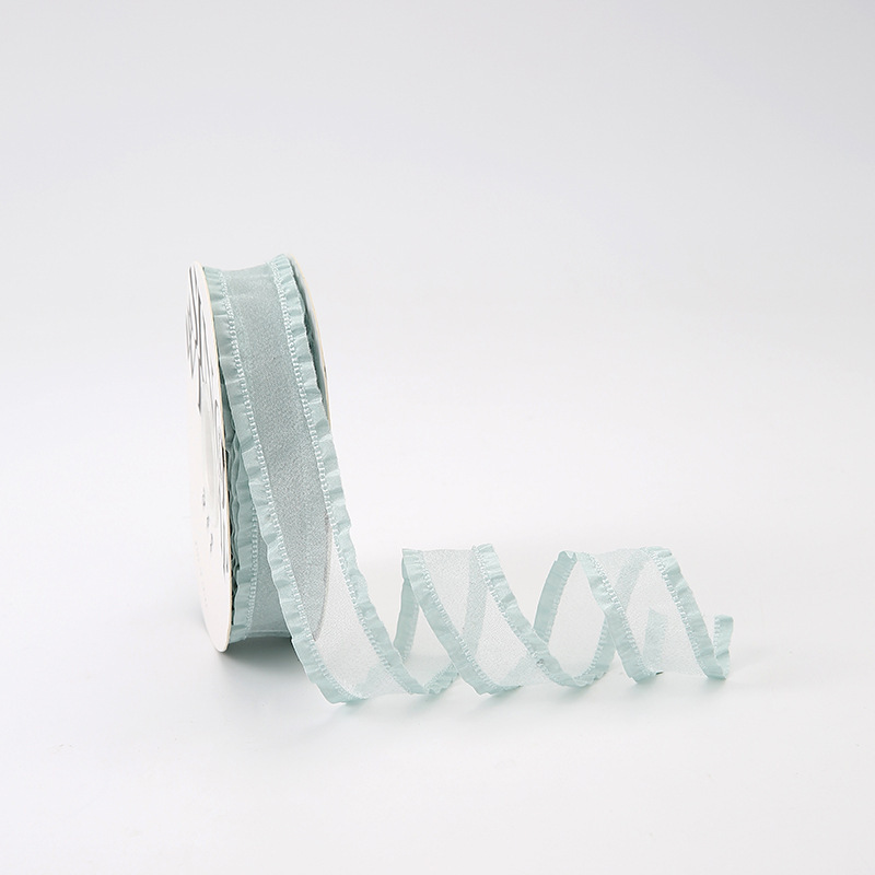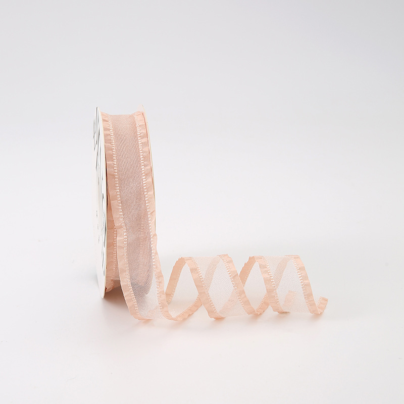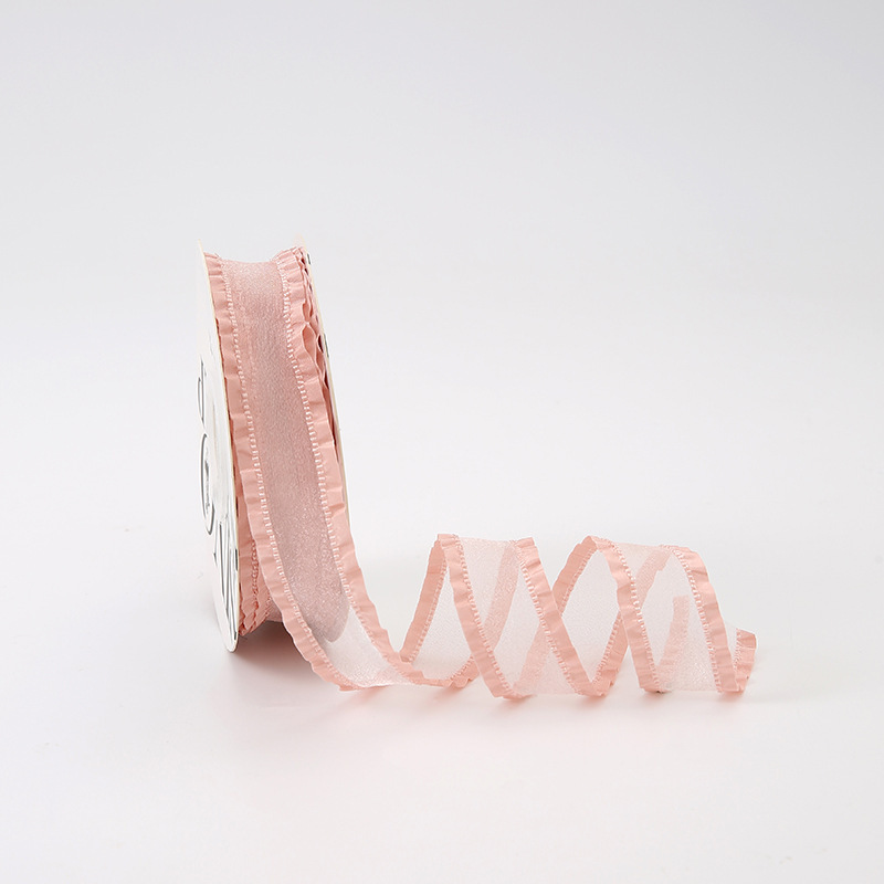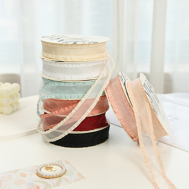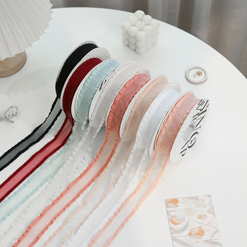 七夕卡哇伊丝带花束包装蝴蝶结拷边纱带鲜花包装褶皱蕾丝边纱带