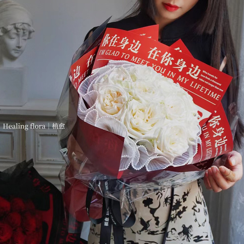七夕节DIY鲜花包装纸批发防水膜花束包装纸在你身边花艺花束纸