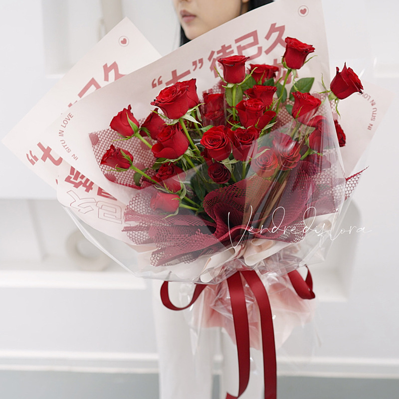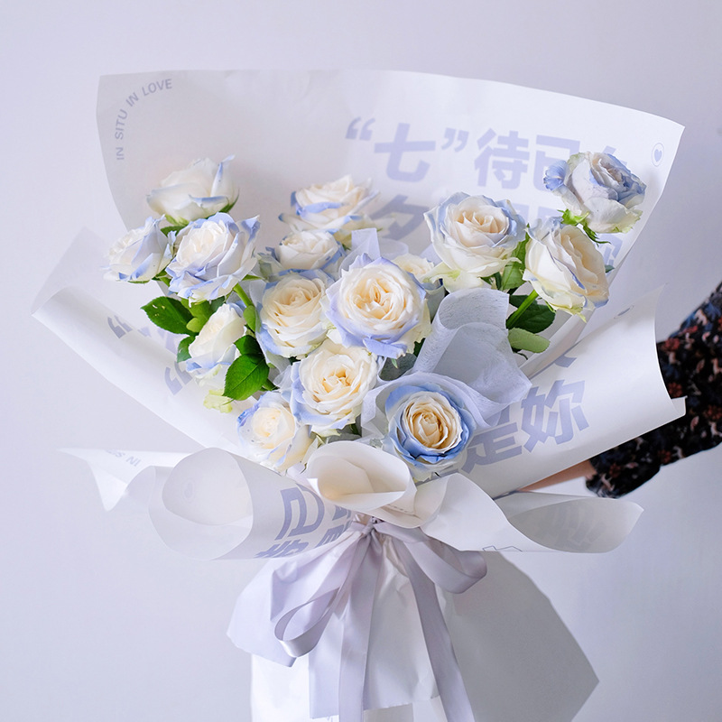 七夕双色欧雅纸玫瑰花束包装纸节日礼品包装花店花艺插花材料用品