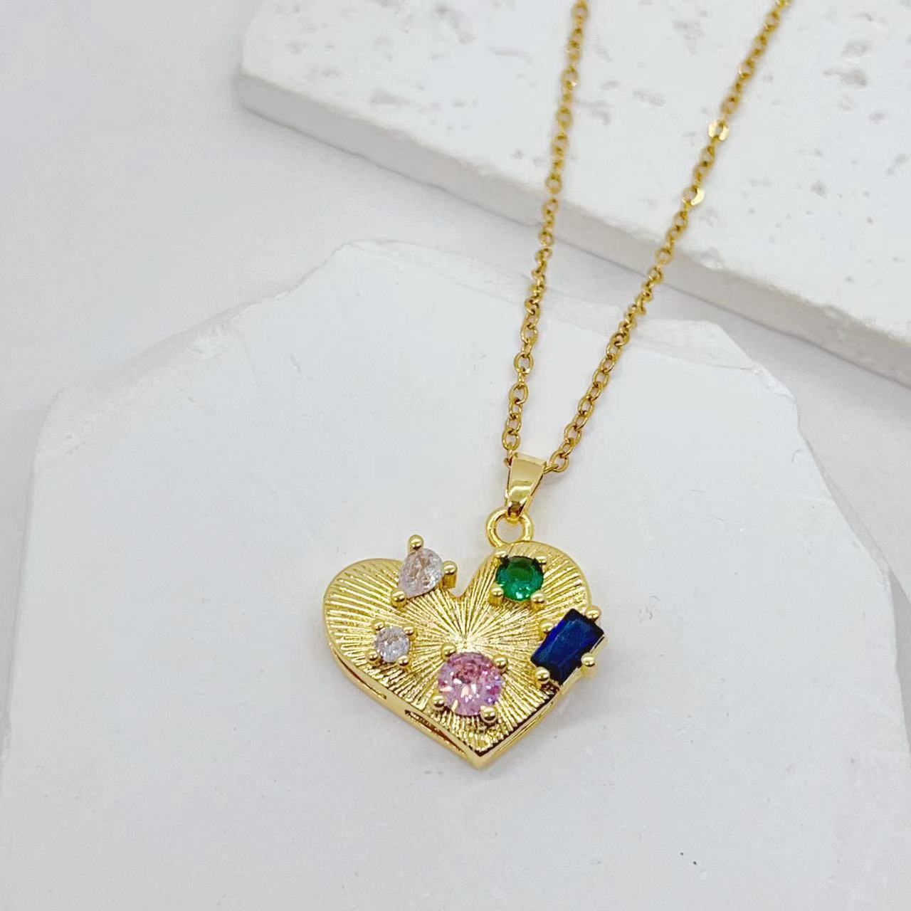 欧美跨境新品个性创意滴油爱心项链铜镀18K桃心锁骨女链钛钢链条
