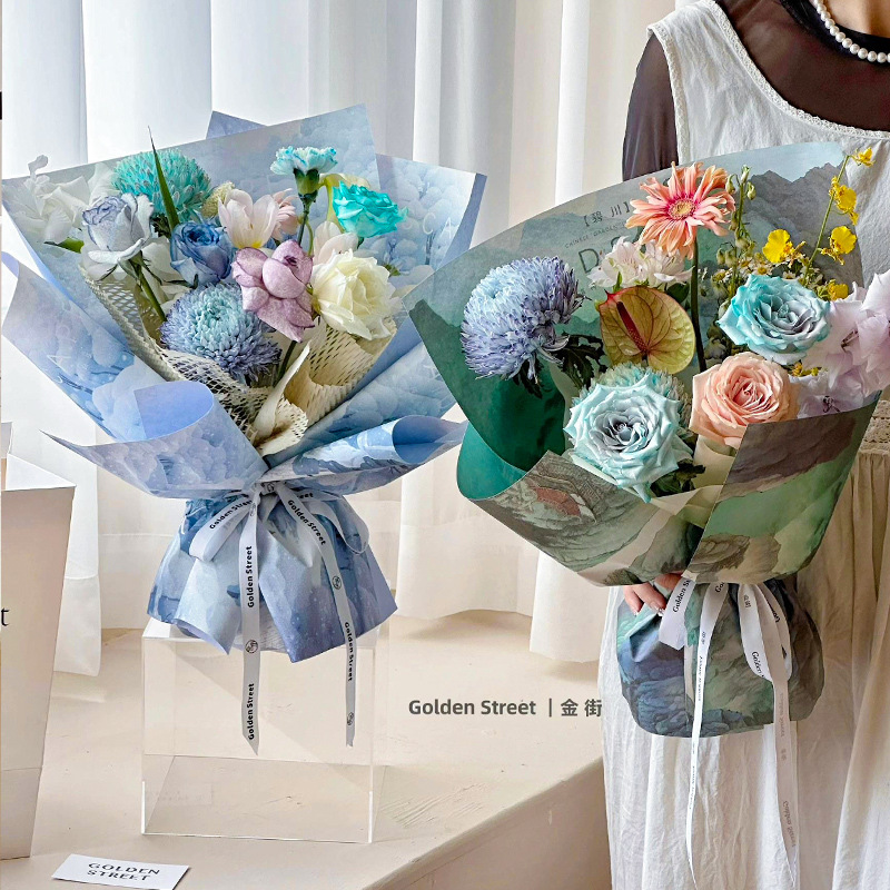 85g风华纸批发七夕草木山川花束纸鲜花包装花店氛围感国风艺术纸