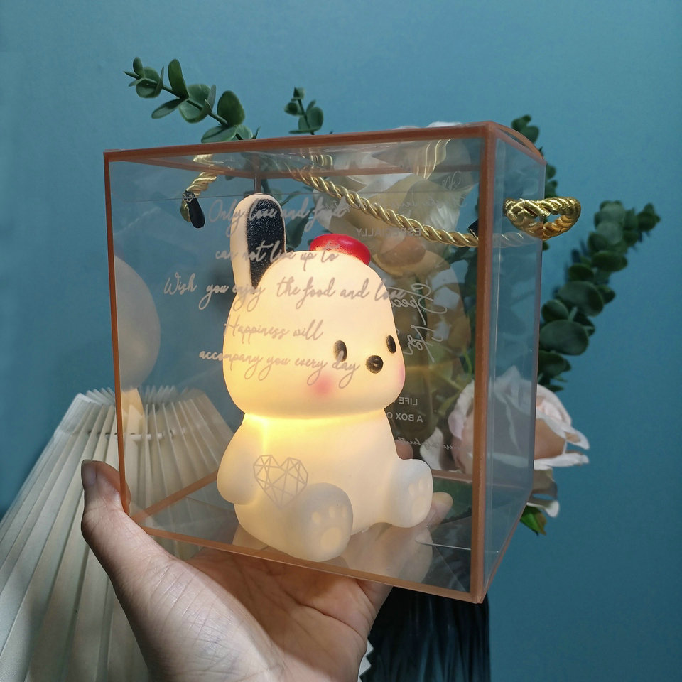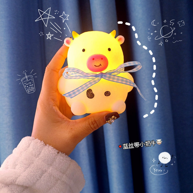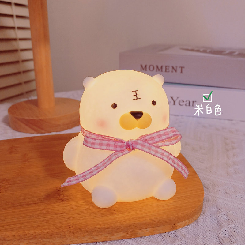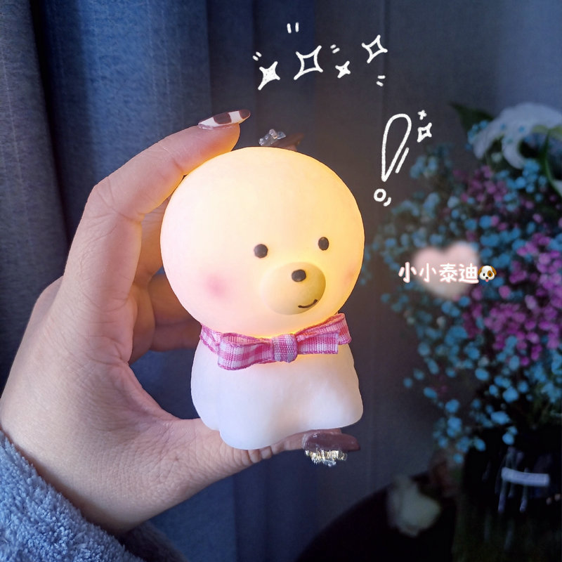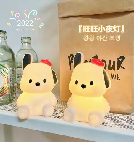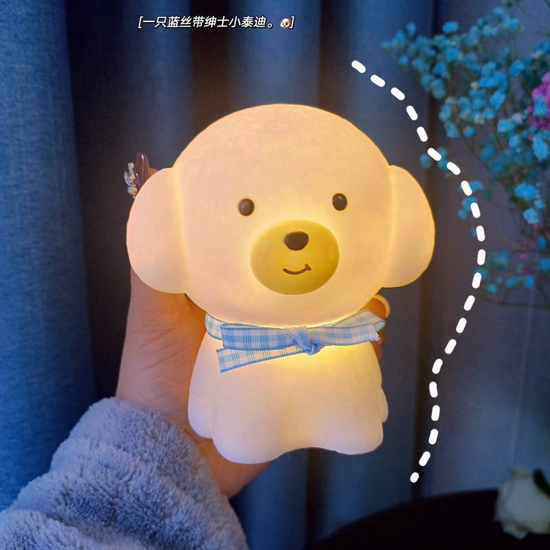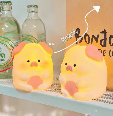 网红圣诞帕恰狗小夜灯月亮粉色小猪卧室桌面台灯创意生日礼品摆件