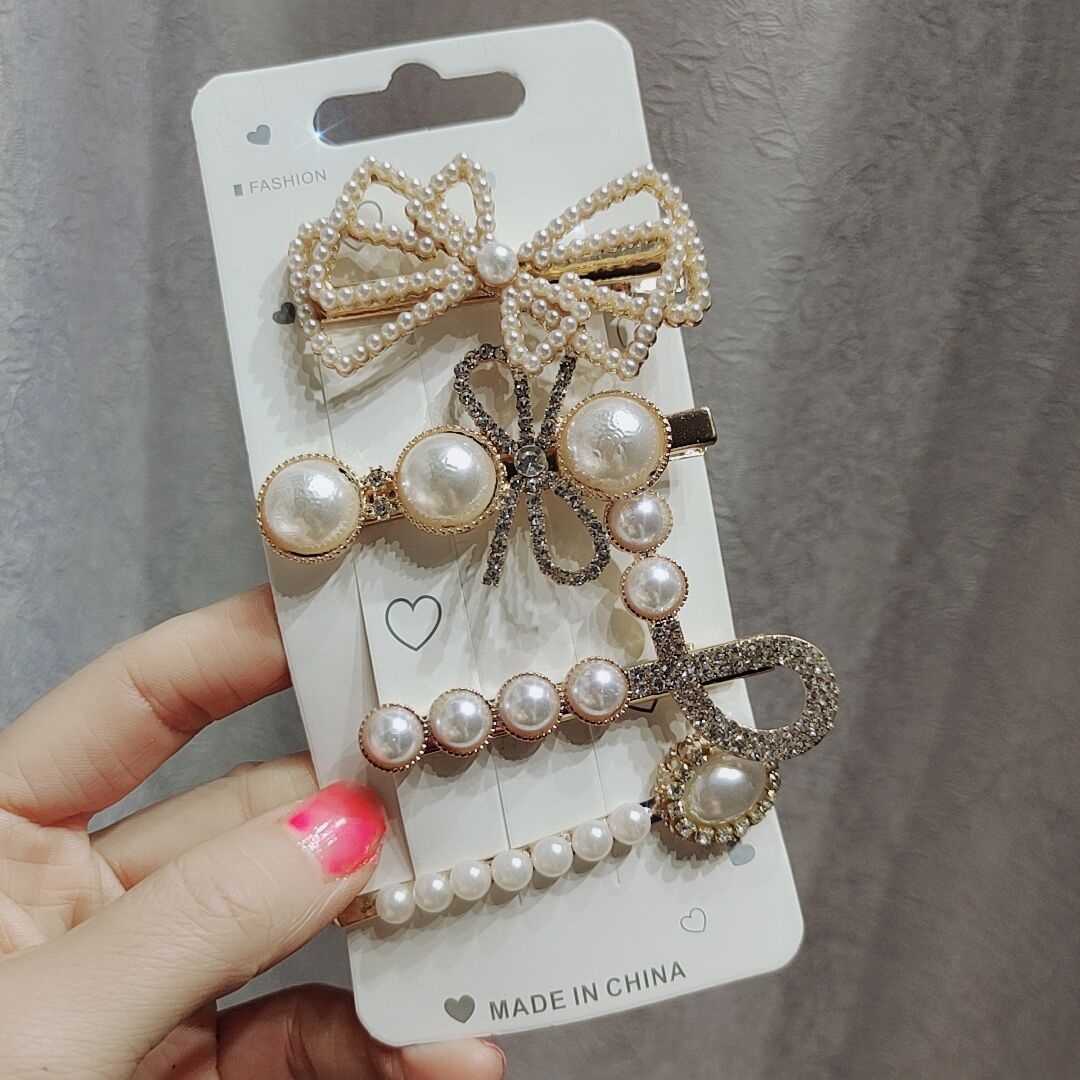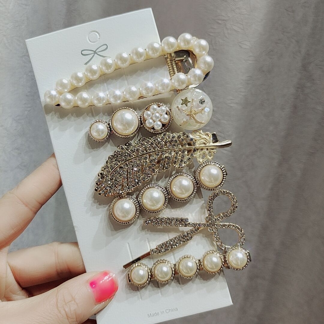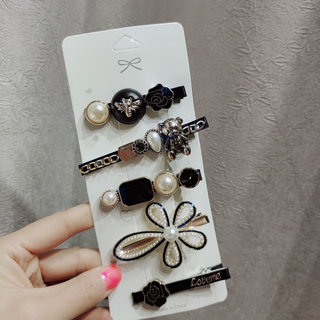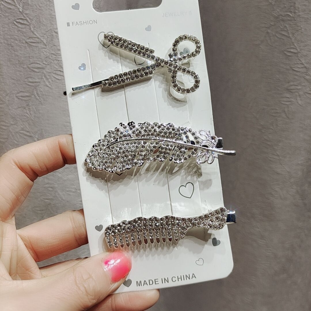 抖音羽毛发夹6件套韩版网红发饰时尚仙女剪刀小熊发卡网红爆款女