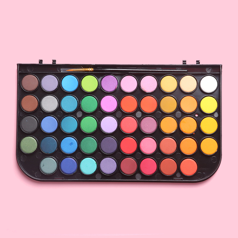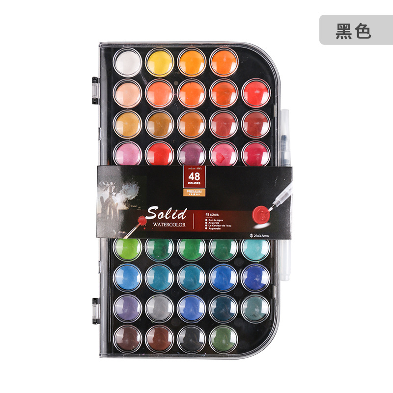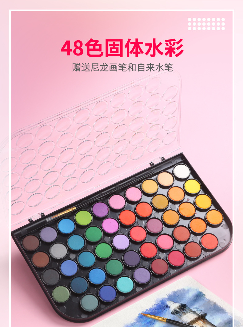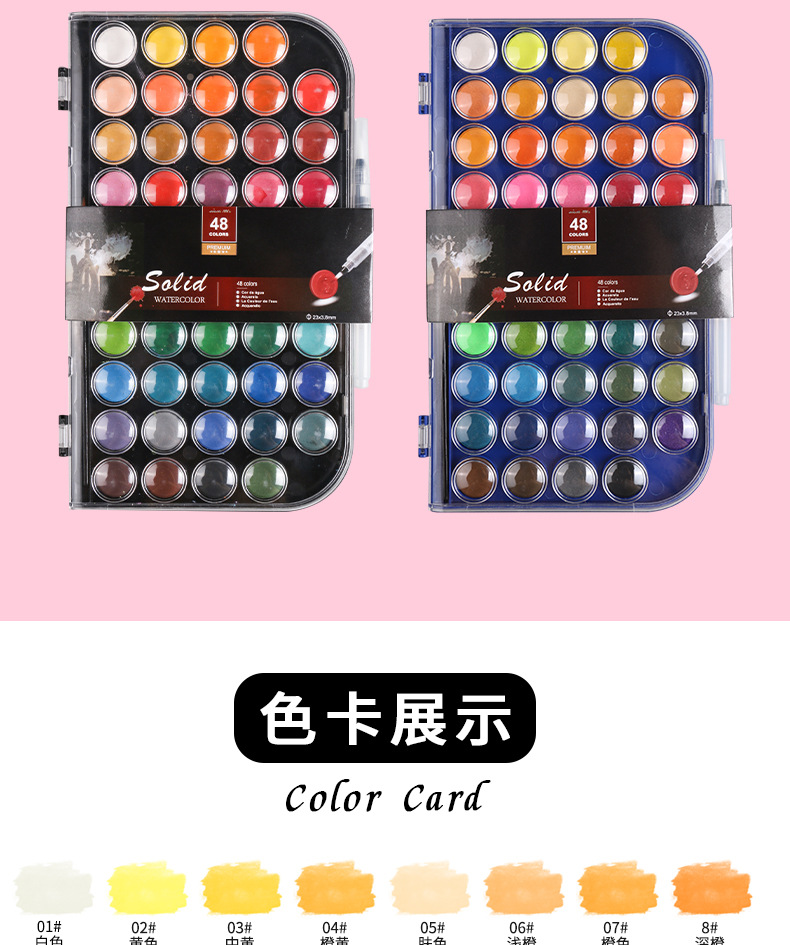 厂家直销48色固体水彩水粉颜料套装批发儿童初学者粉饼塑料盒颜料