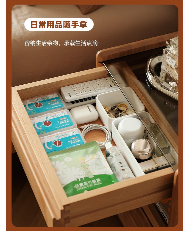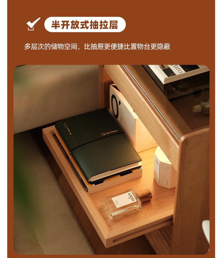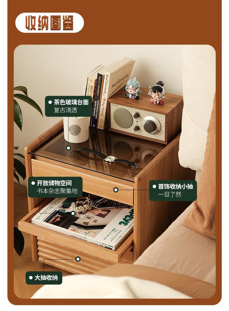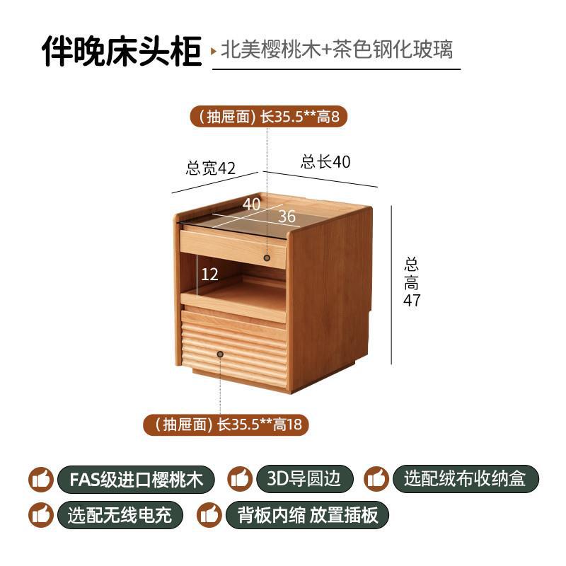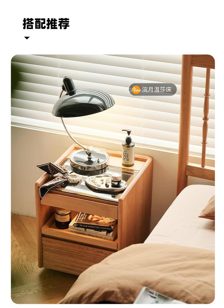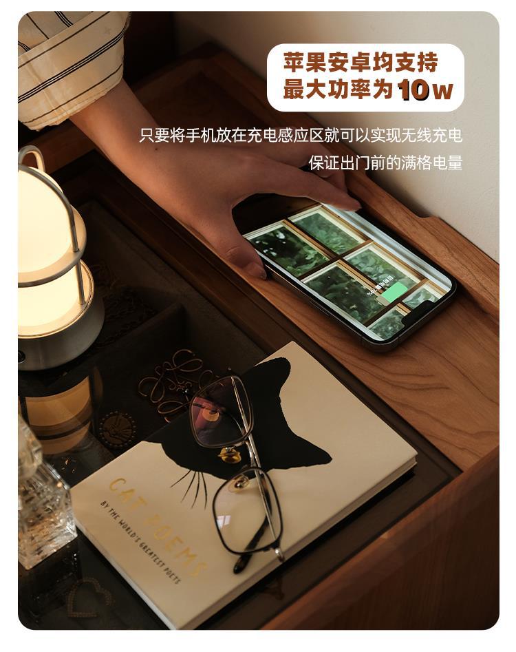 床头柜 北欧实木智能无线充电复古床边柜日式整装收纳置物柜
