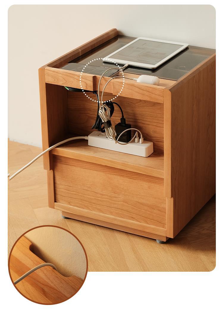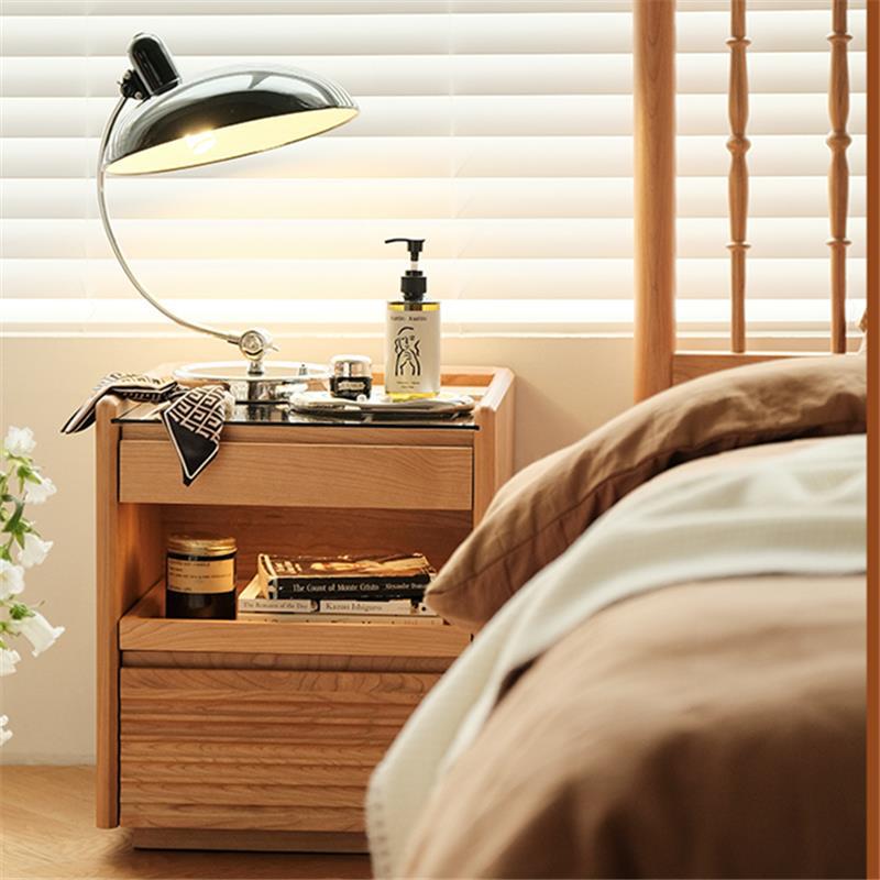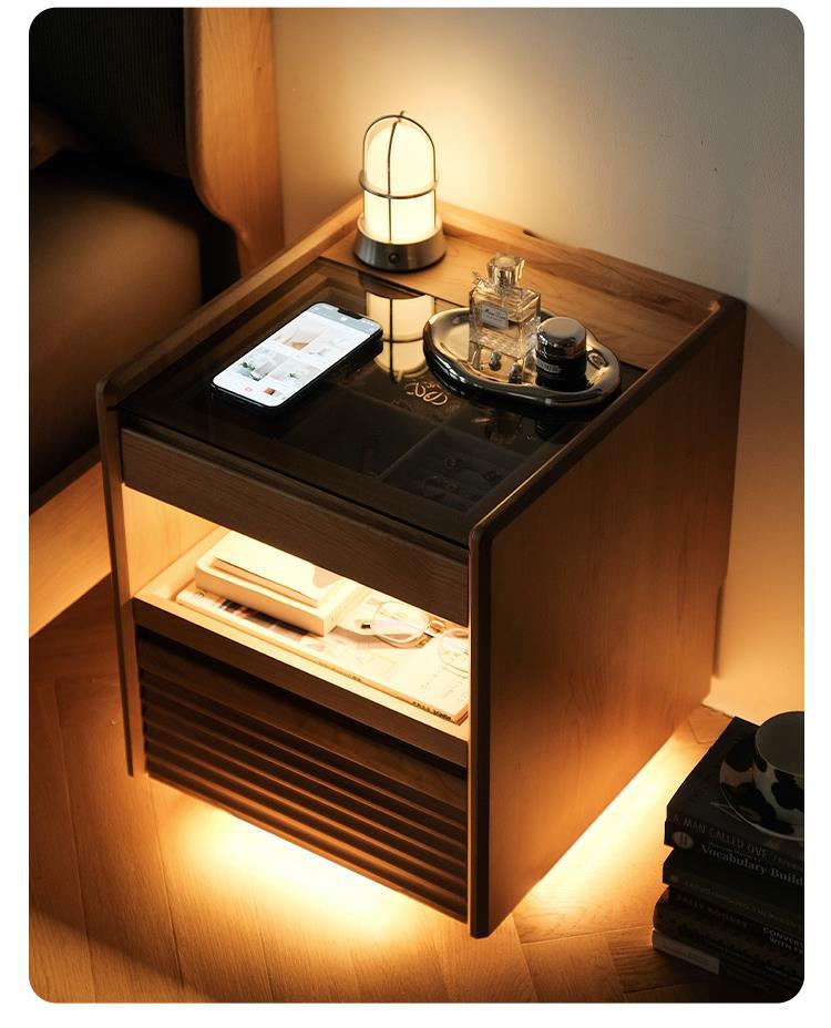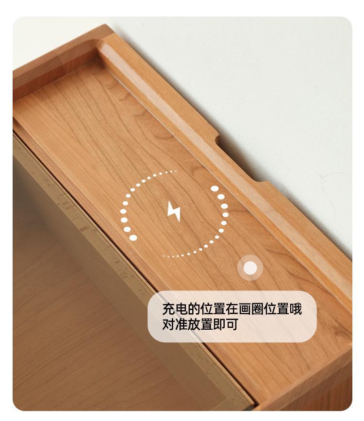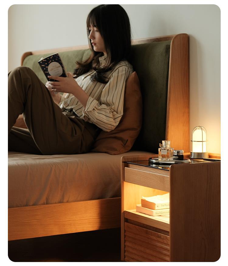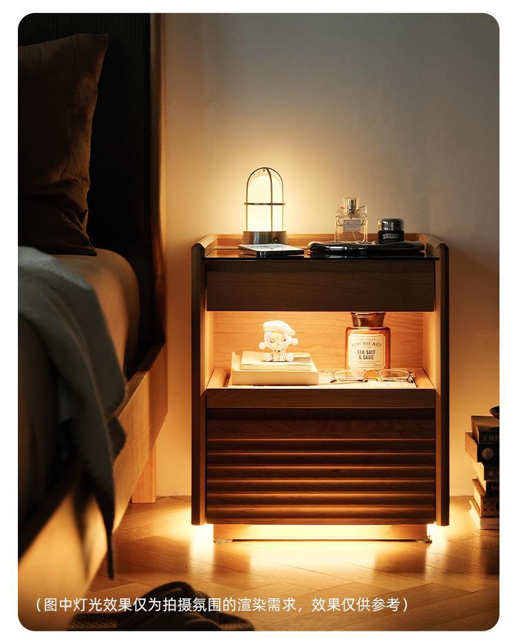 床头柜 北欧实木智能无线充电复古床边柜日式整装收纳置物柜