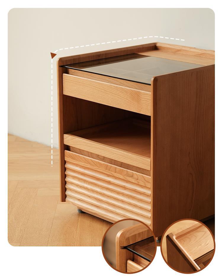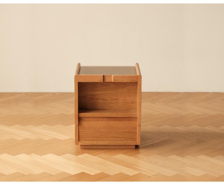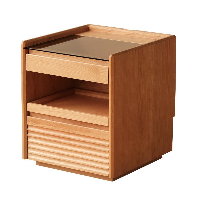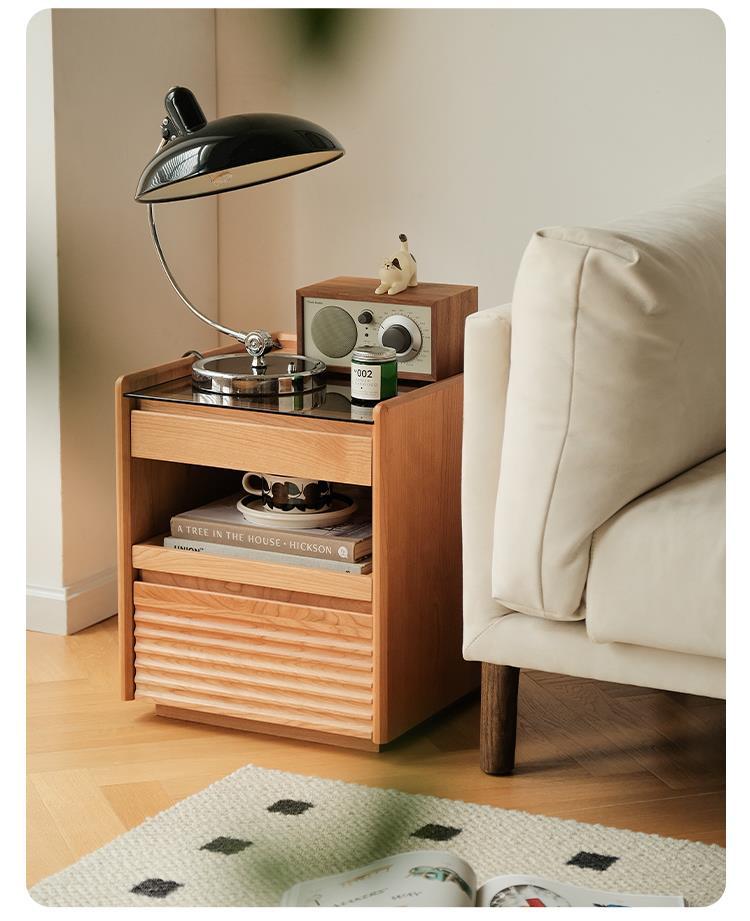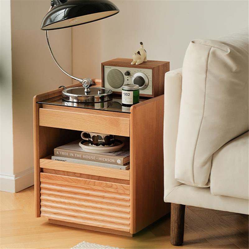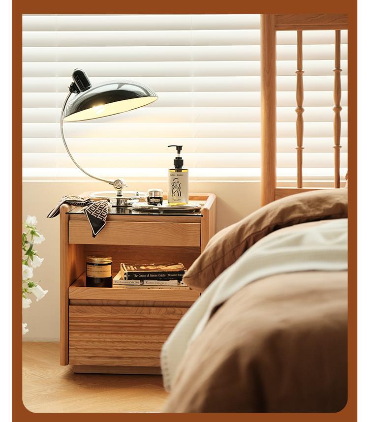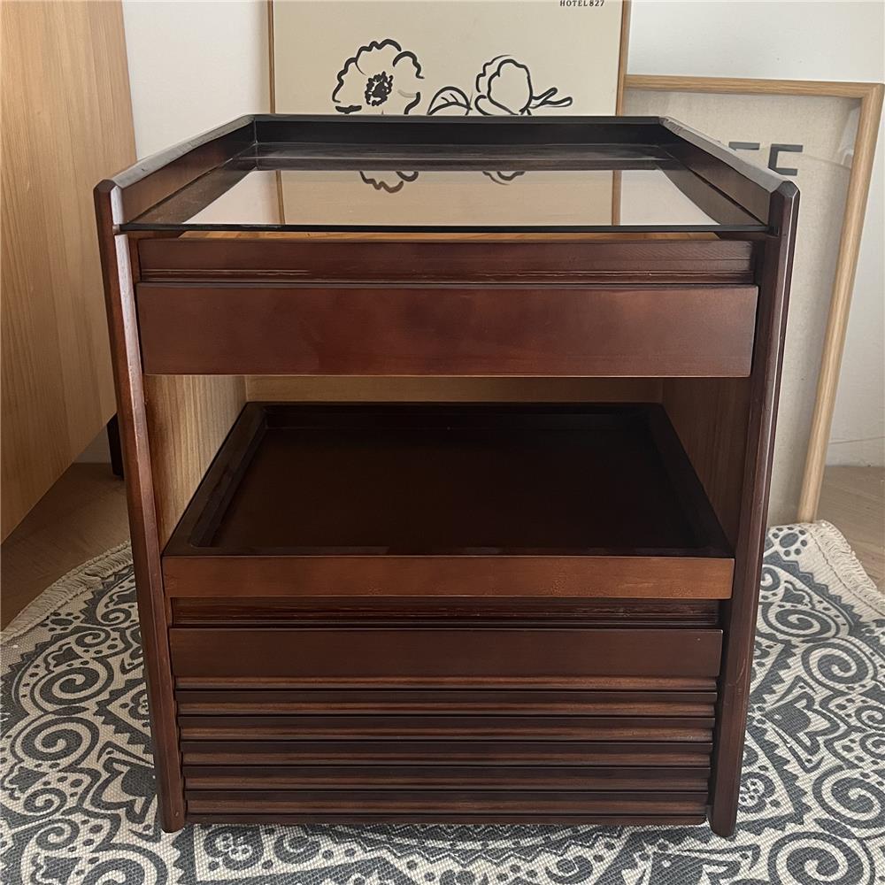 床头柜 北欧实木智能无线充电复古床边柜日式整装收纳置物柜