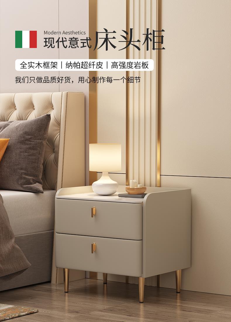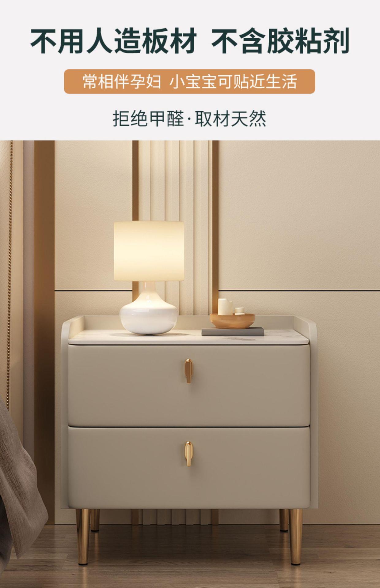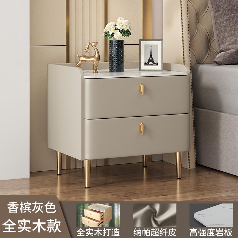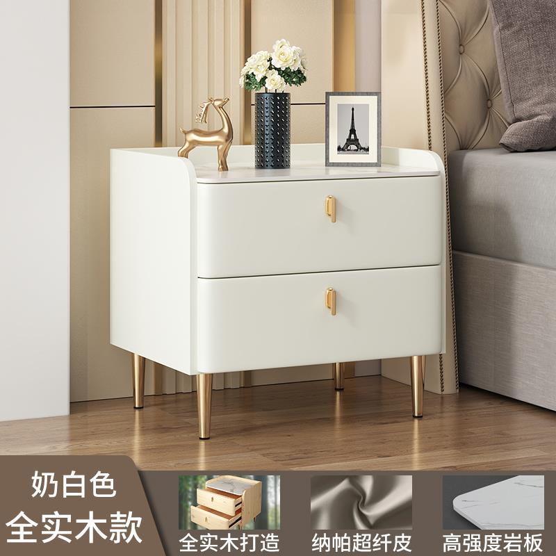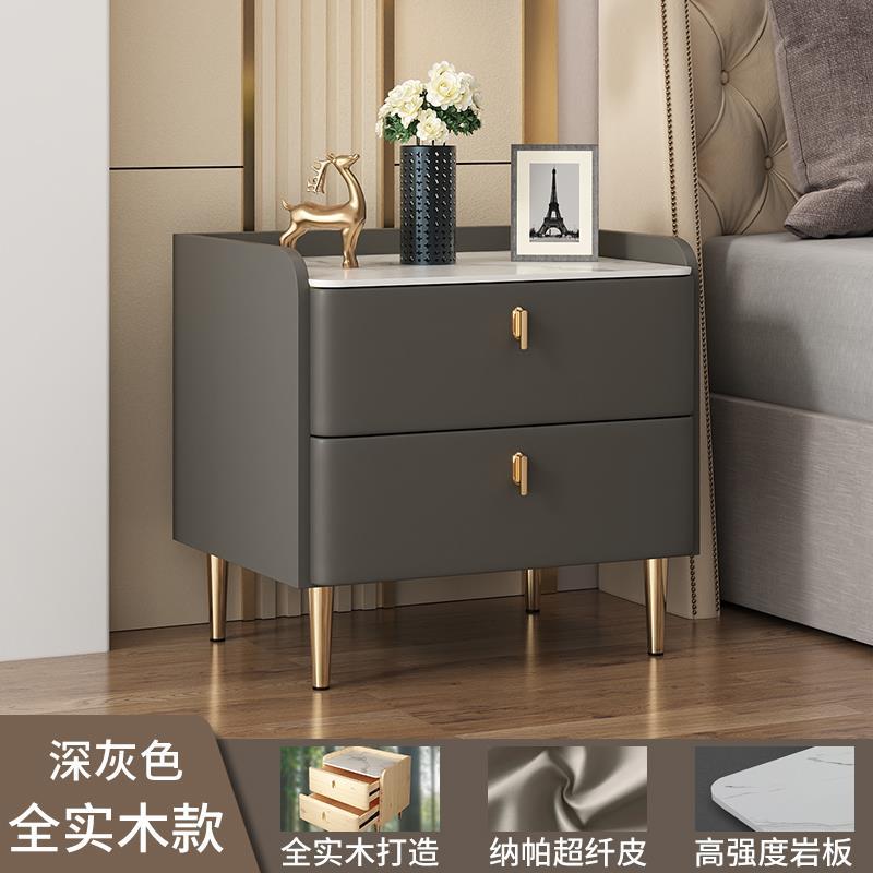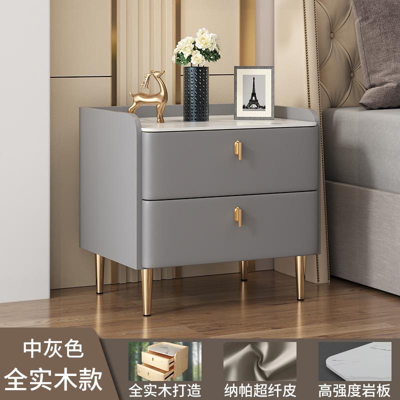轻奢全实木智能床头柜简约现代柜子床边柜卧室岩板小型床头收纳柜