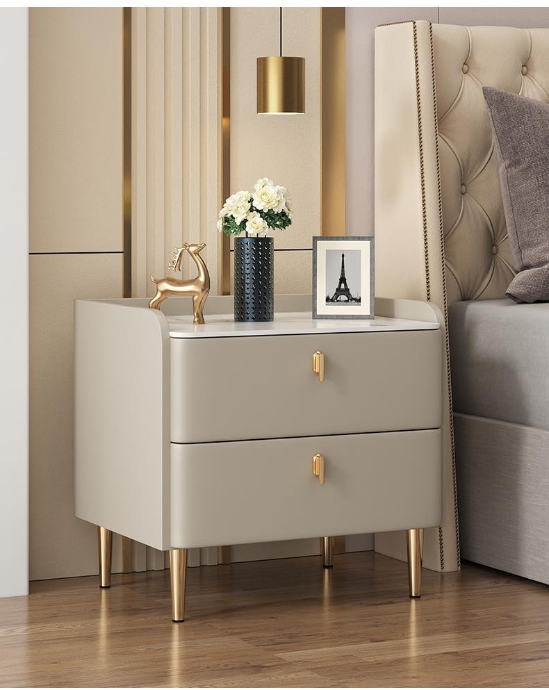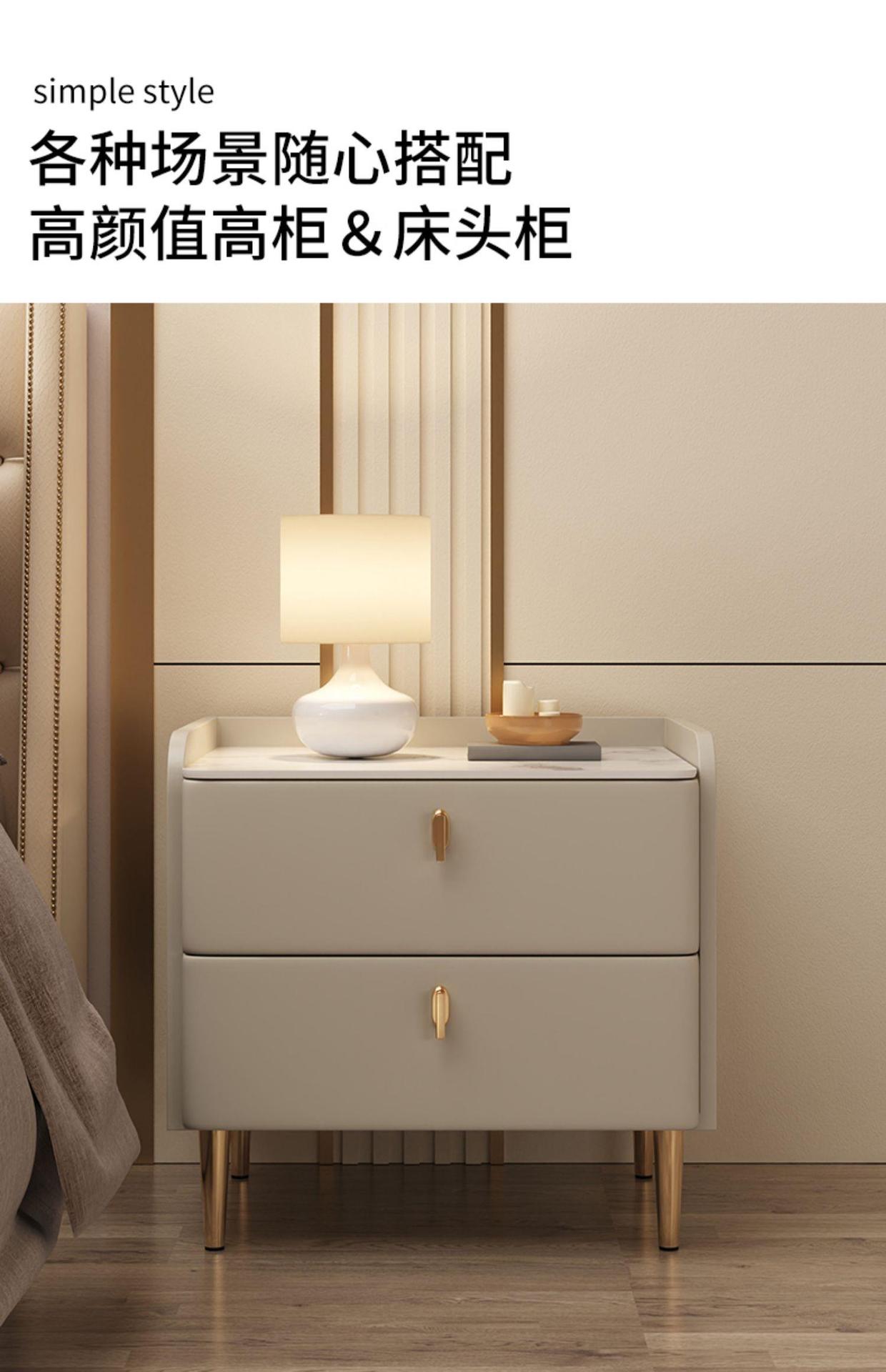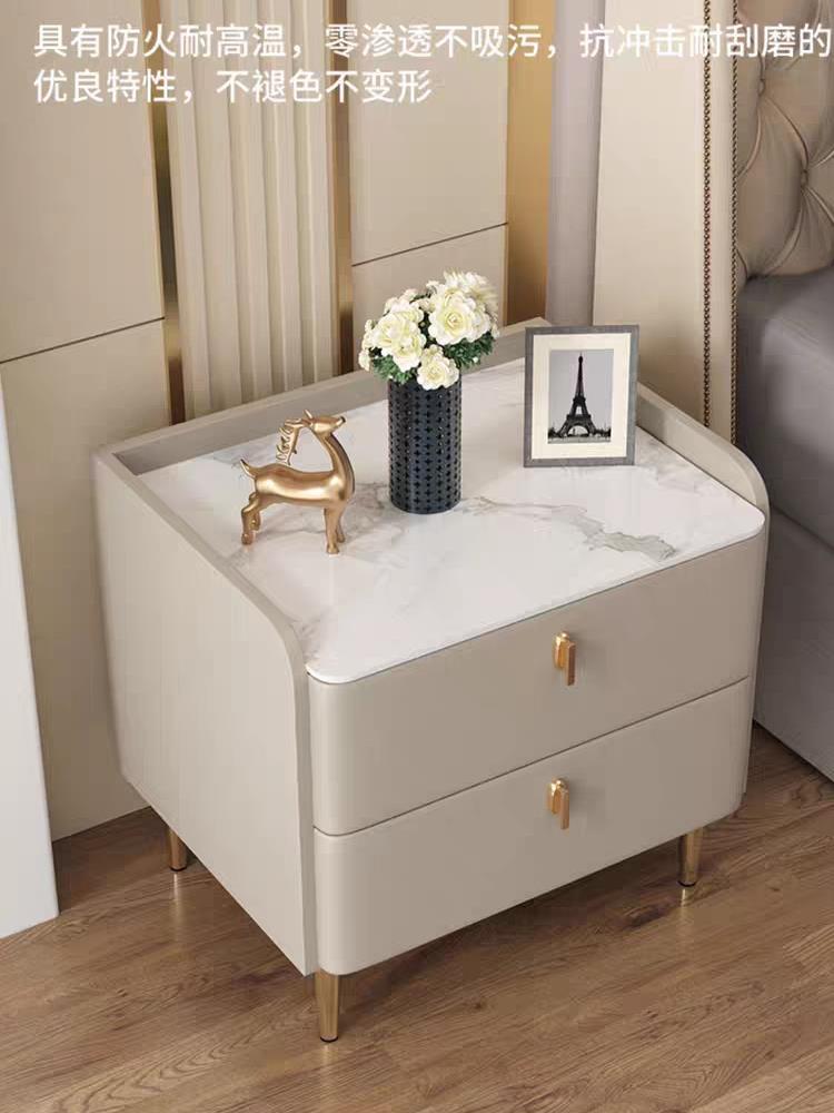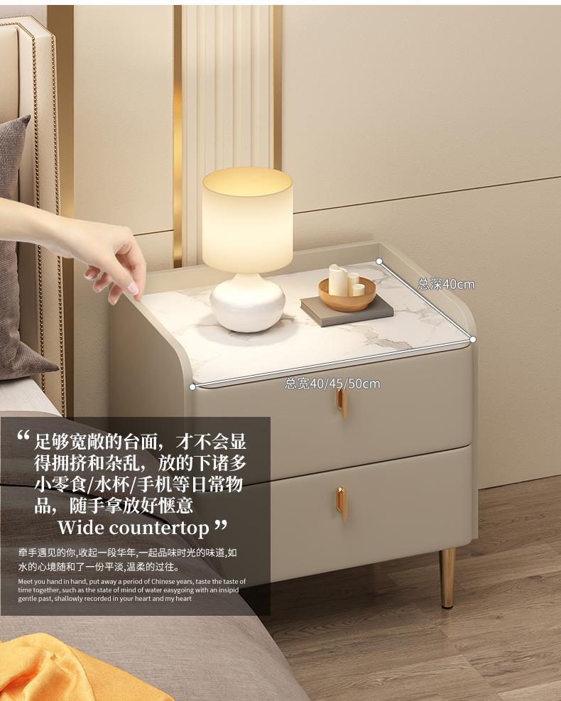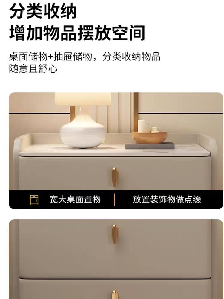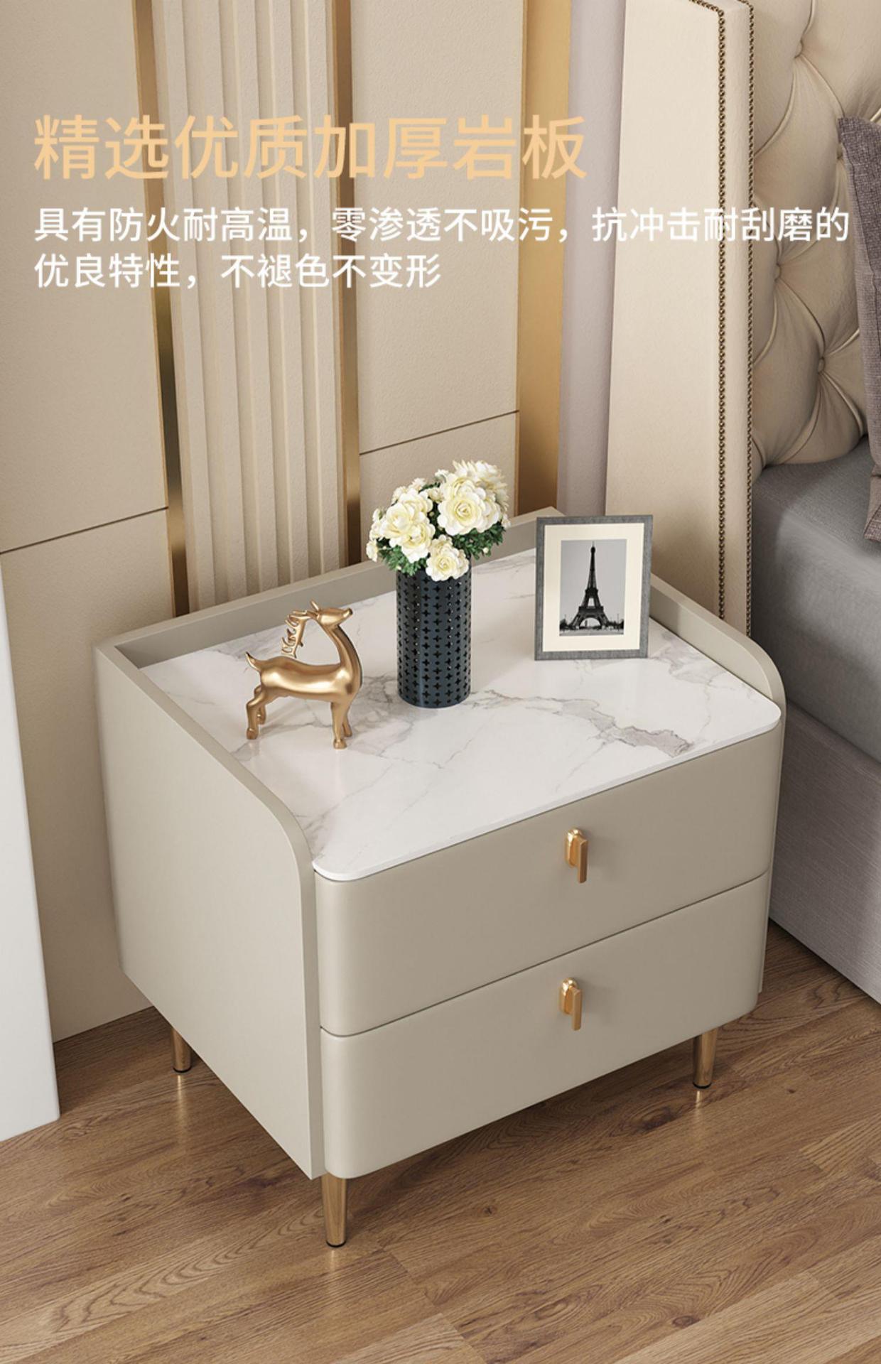 轻奢全实木智能床头柜简约现代柜子床边柜卧室岩板小型床头收纳柜