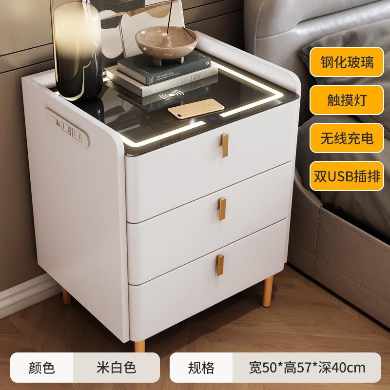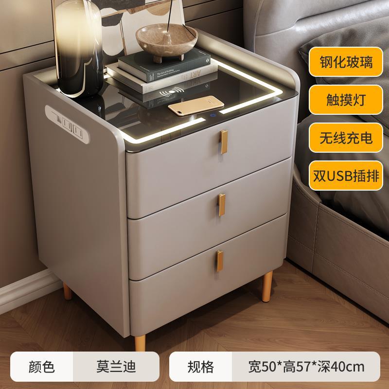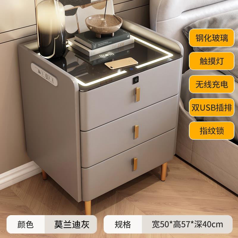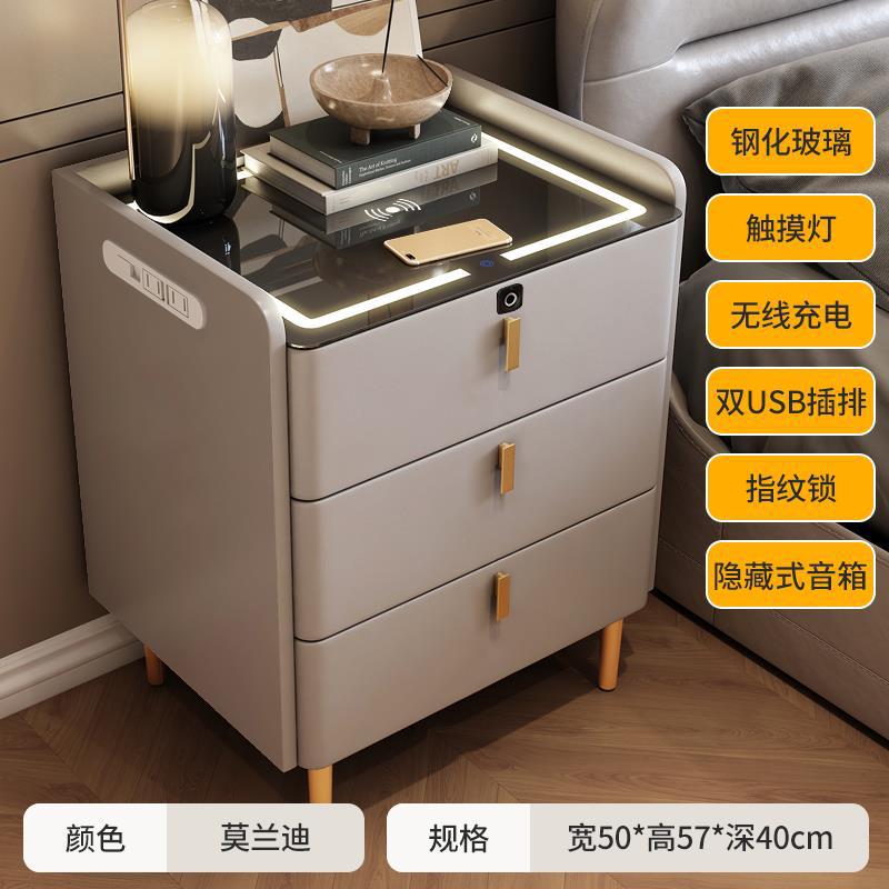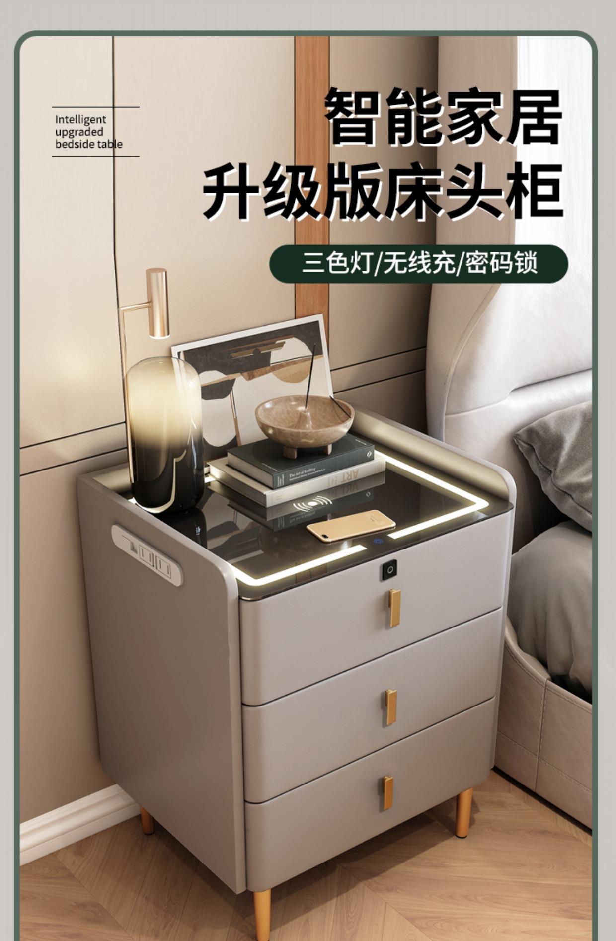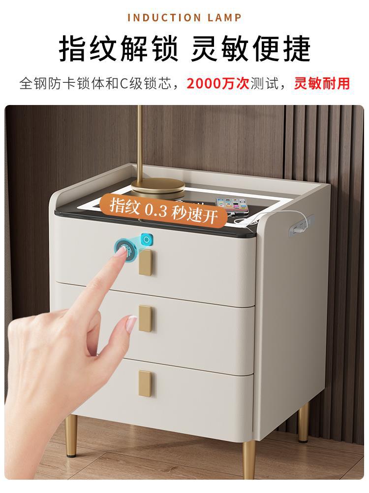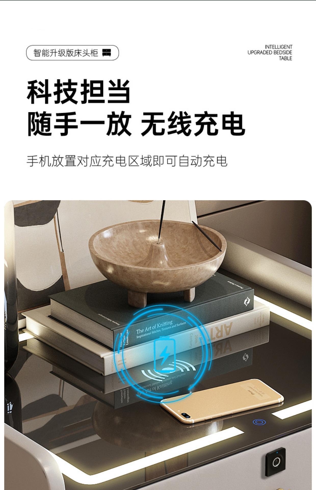 网红智能床头柜简约现代充电多功能卧室轻奢感带锁床边储物柜