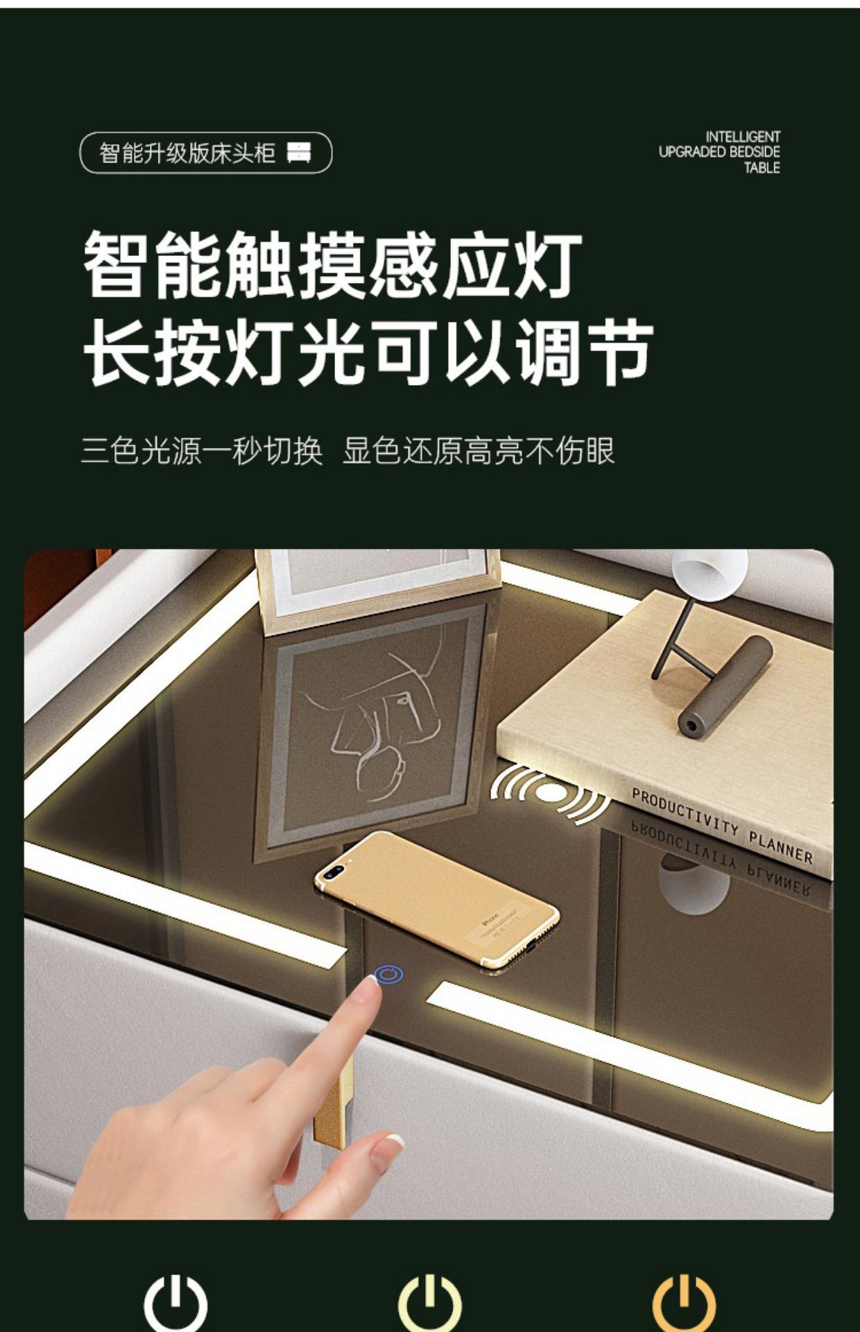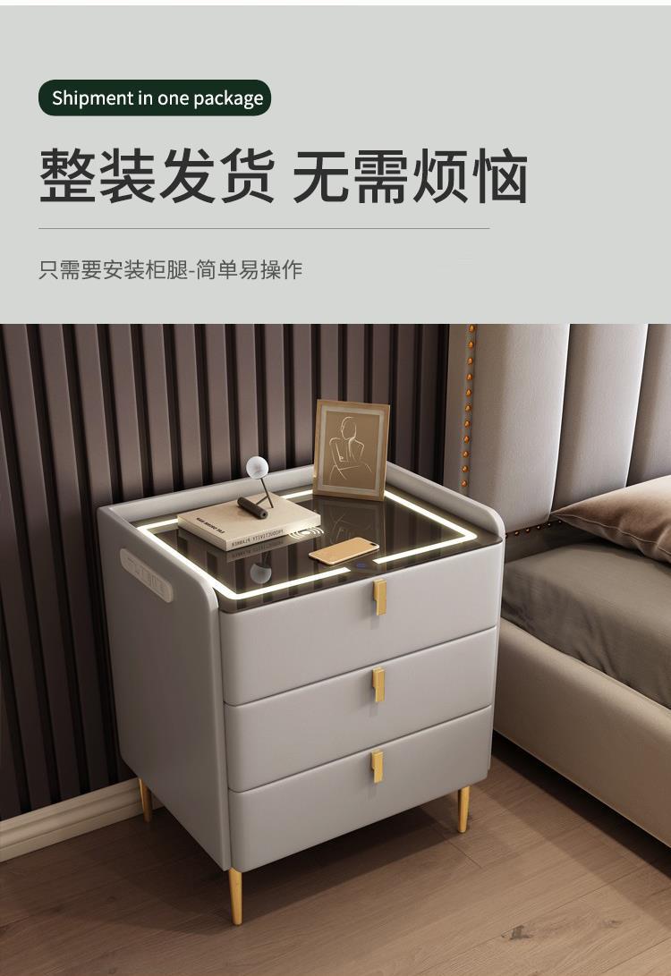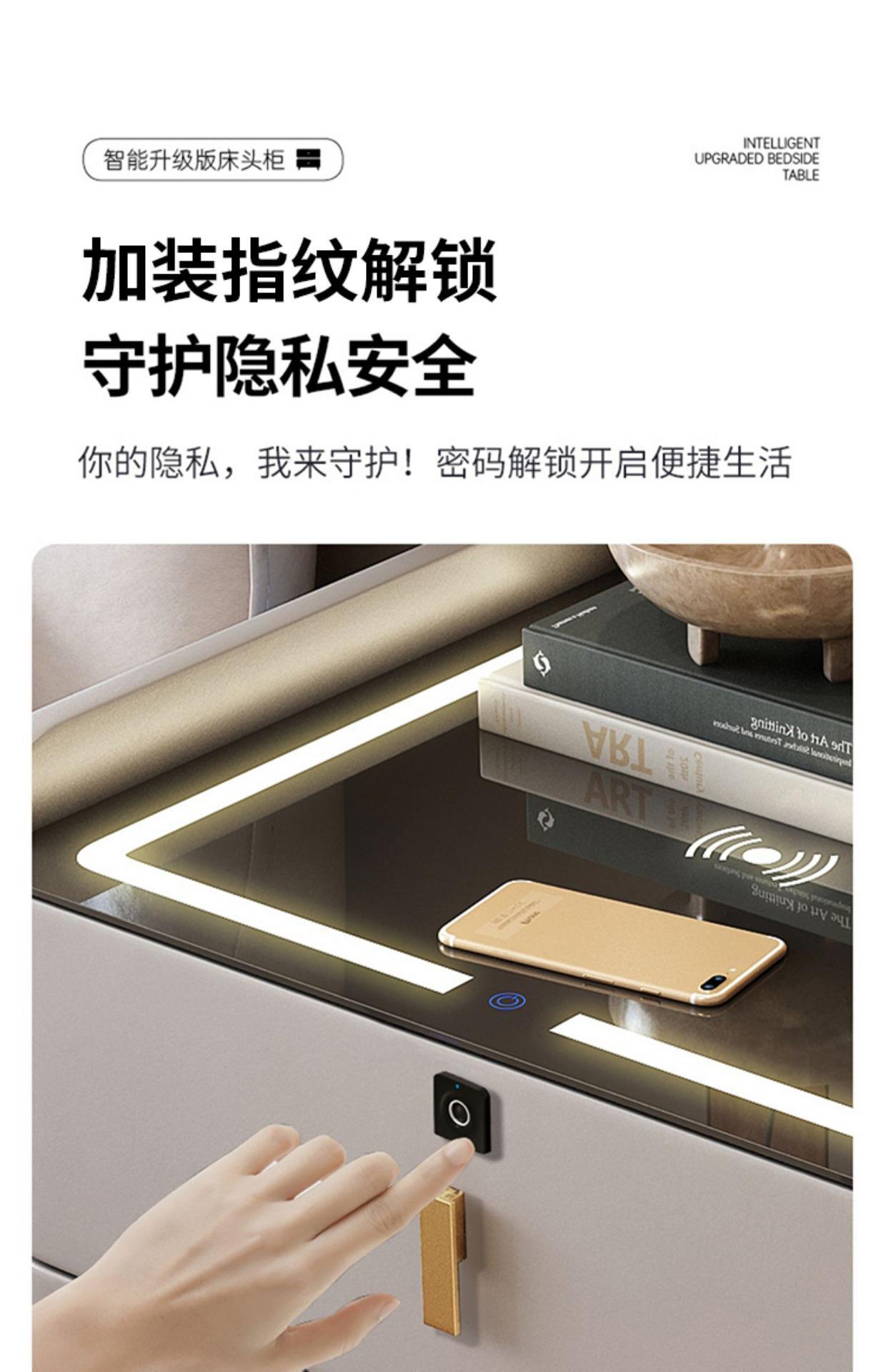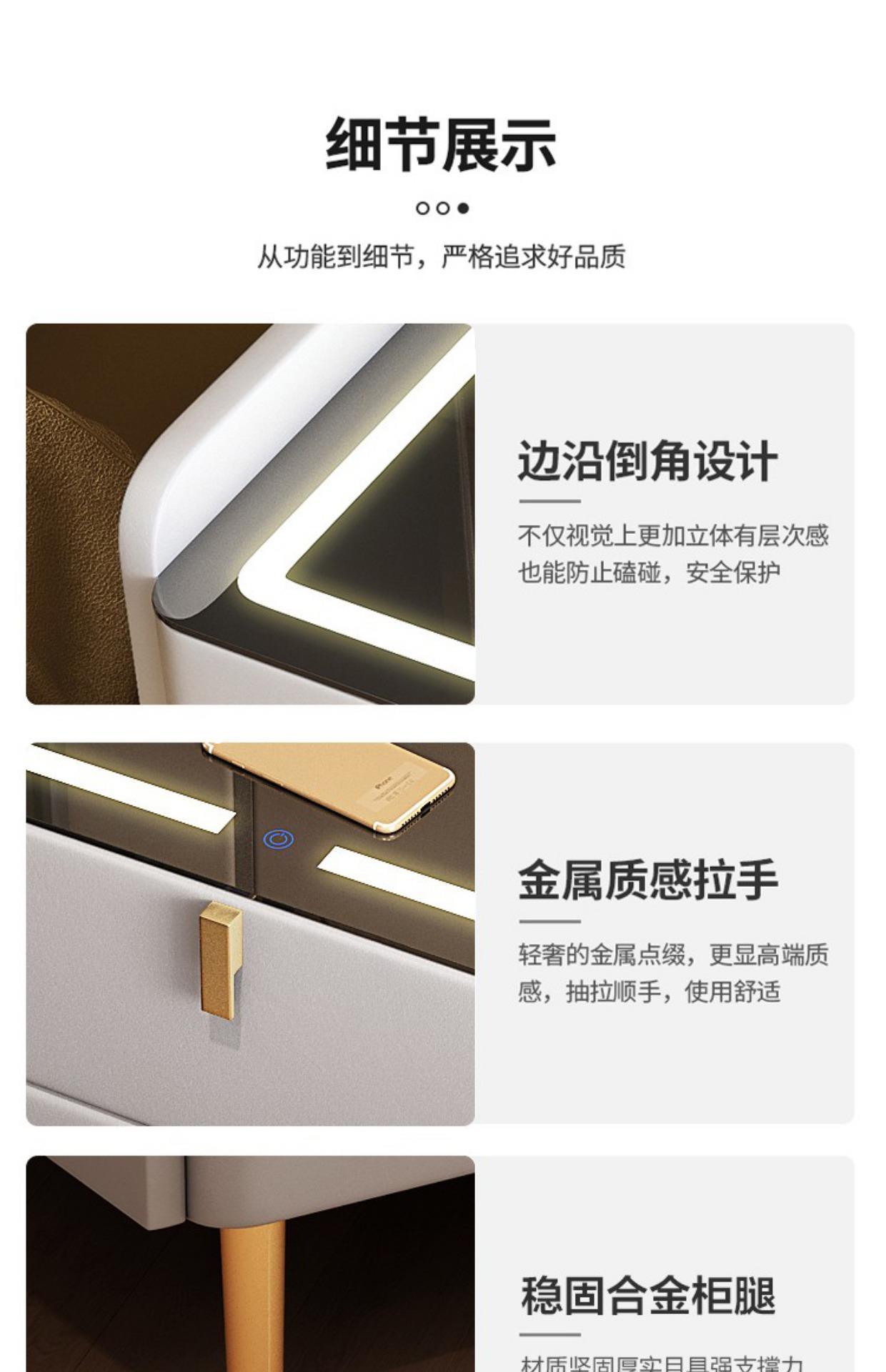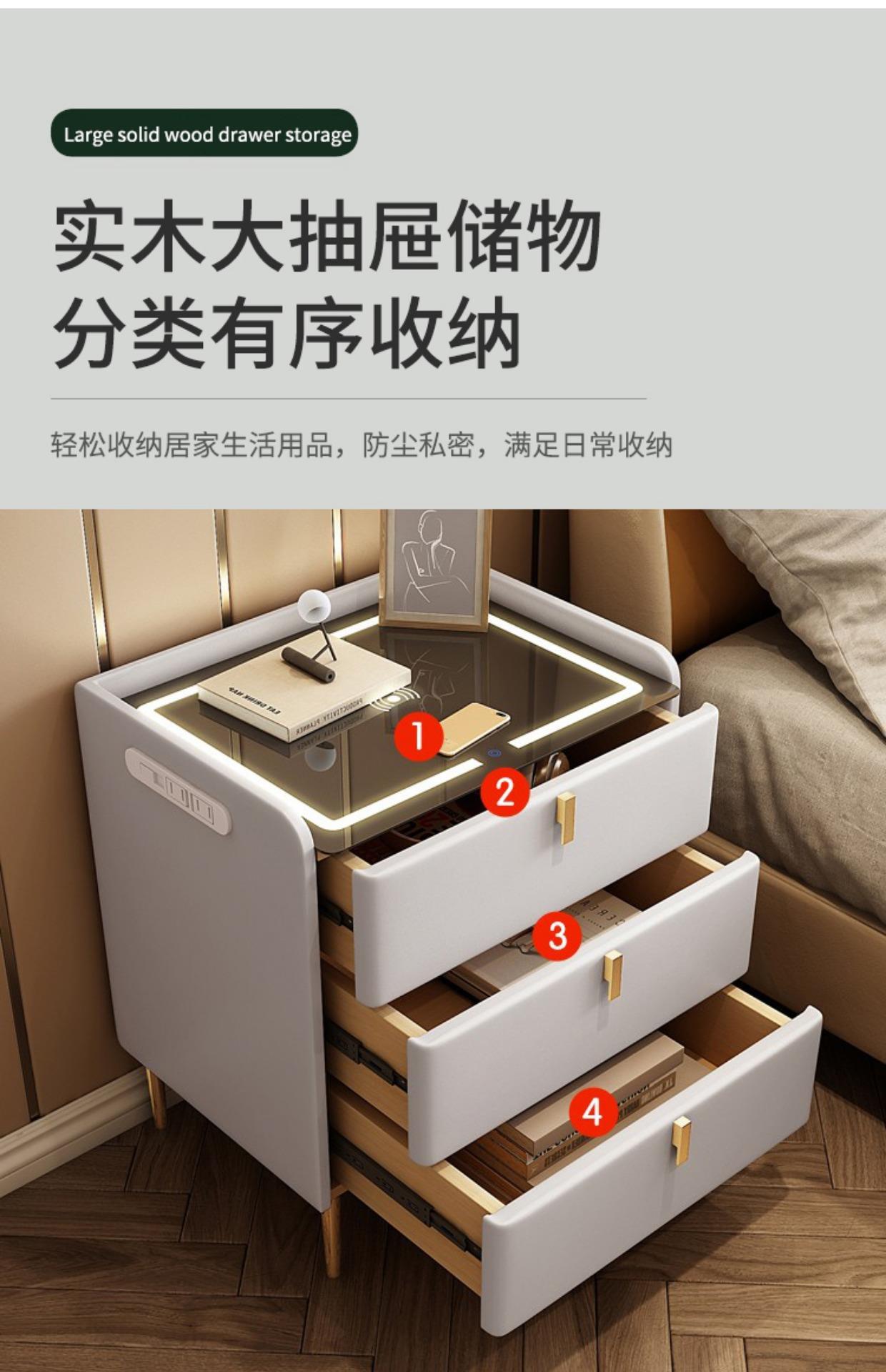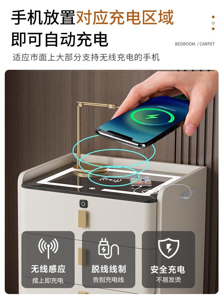 网红智能床头柜简约现代充电多功能卧室轻奢感带锁床边储物柜